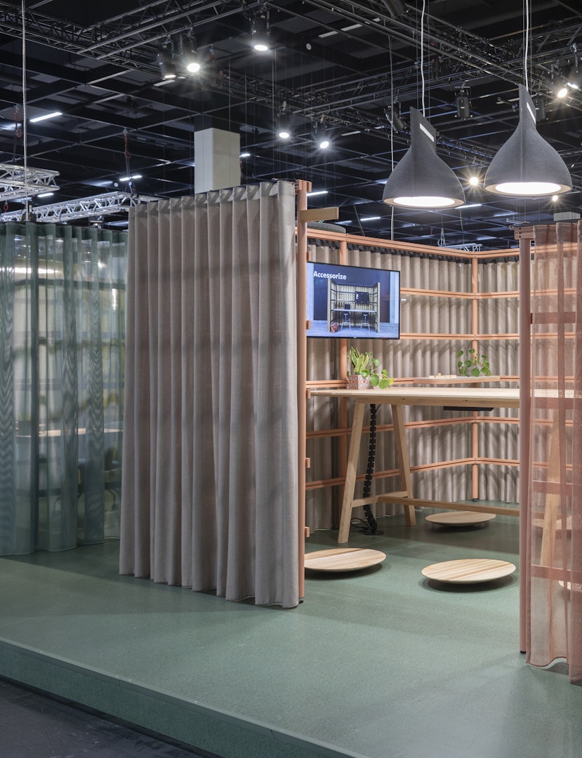 Constructed with a blend of contrasting shiny and matte yarns, the surface of the textile evokes an elegant, vibrant sparkle and pronounced depth of color. From close-up, the differently colored yarn reveals a play of tiny squares, giving the textile a graphic character.