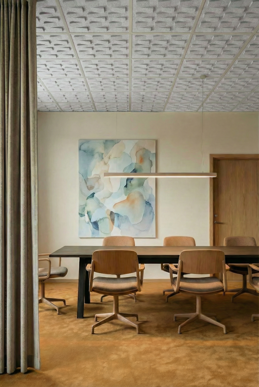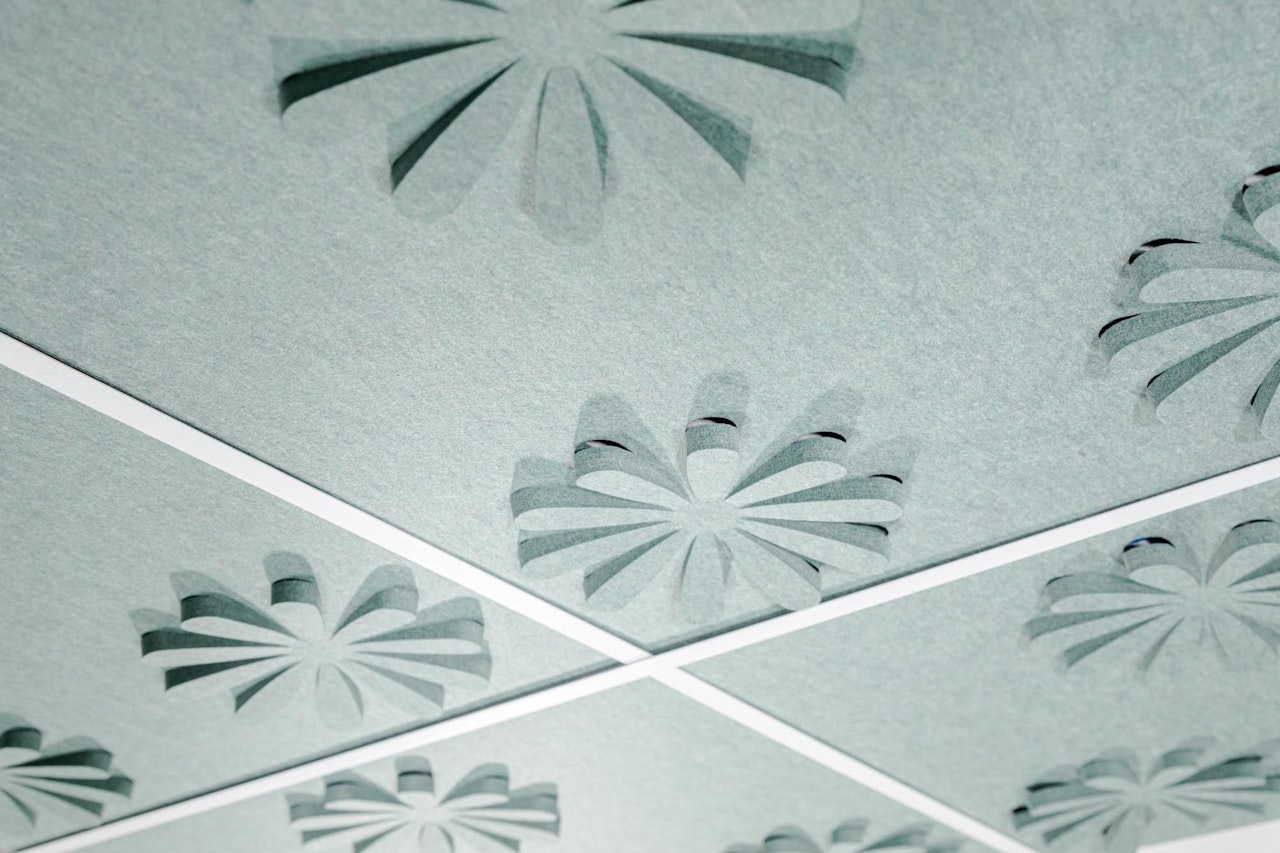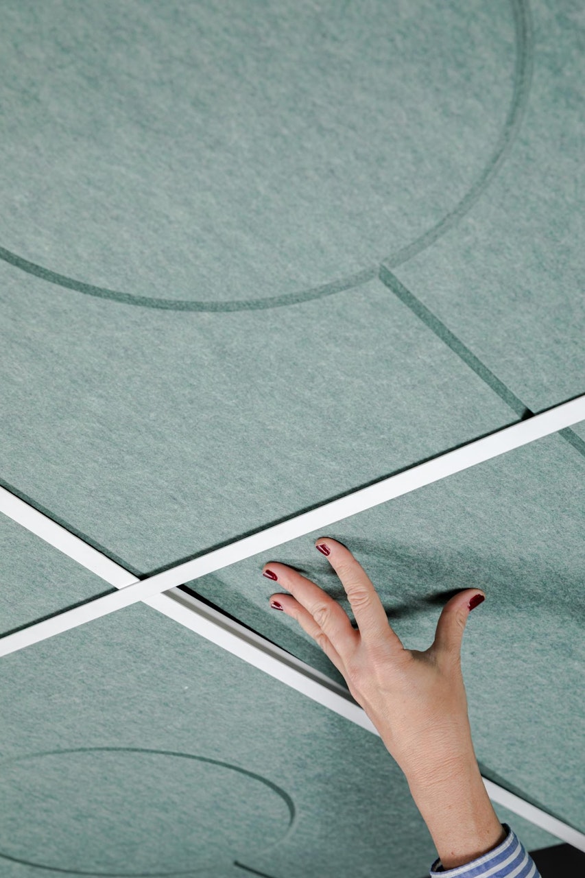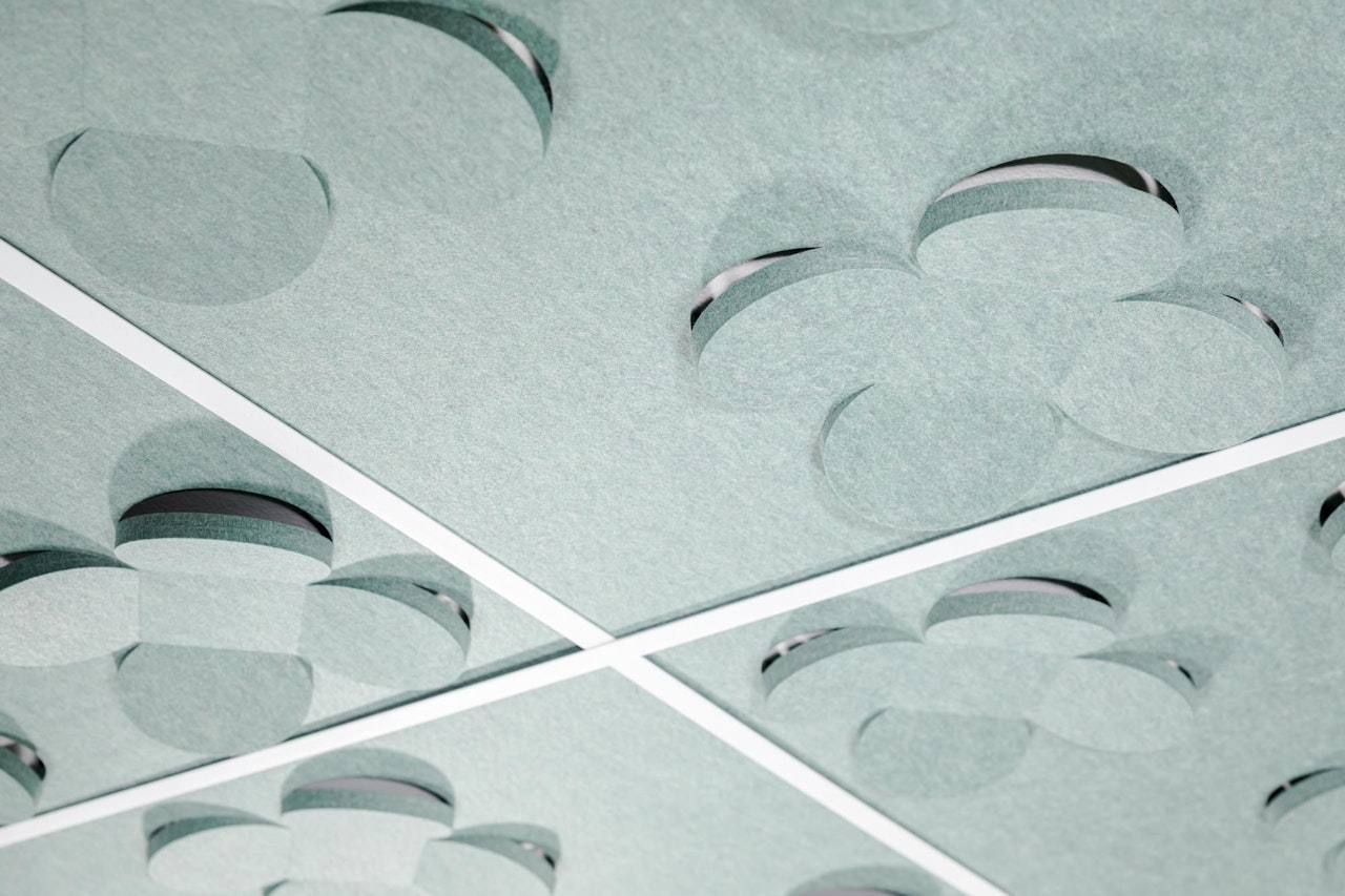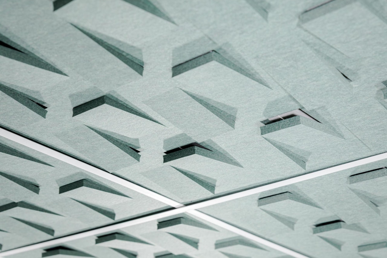 Ceilings are one of the most underused surfaces in acoustic design. In open interiors, sound travels upward, accumulating overhead and bouncing back as reverberation, background noise, and lost speech clarity. BuzziCloud brings modular, pattern-based acoustic treatment to the ceiling, giving architects and designers a high-performance surface where it matters most.