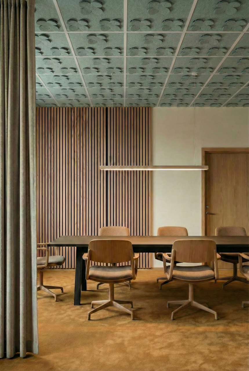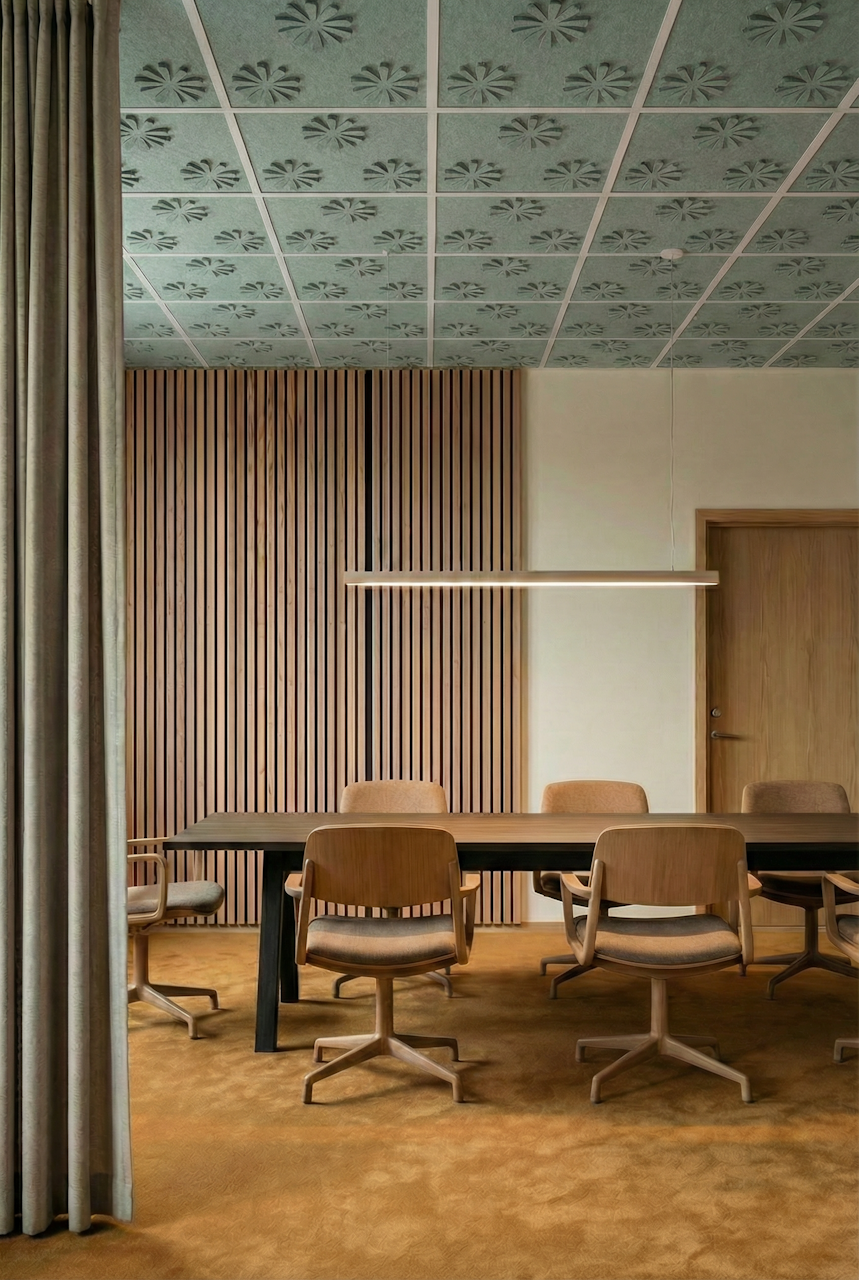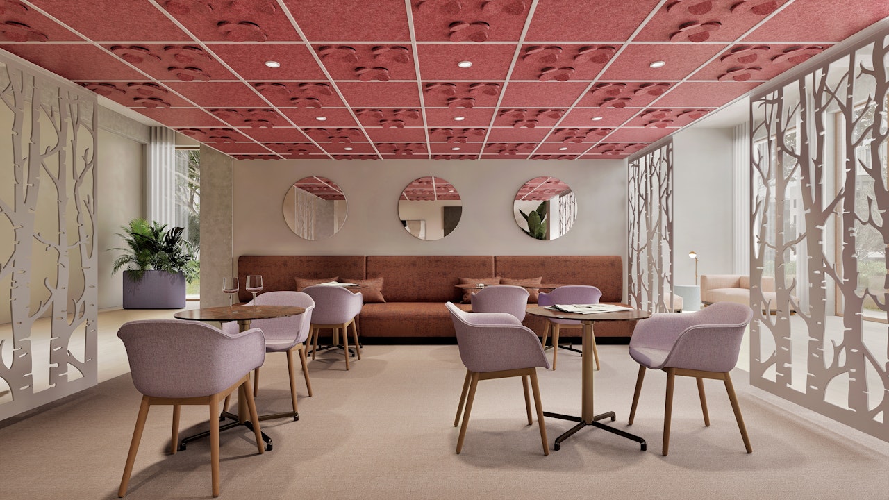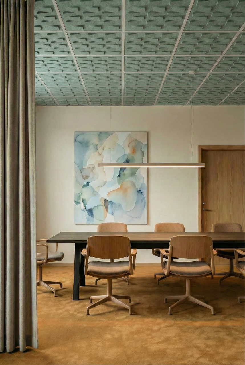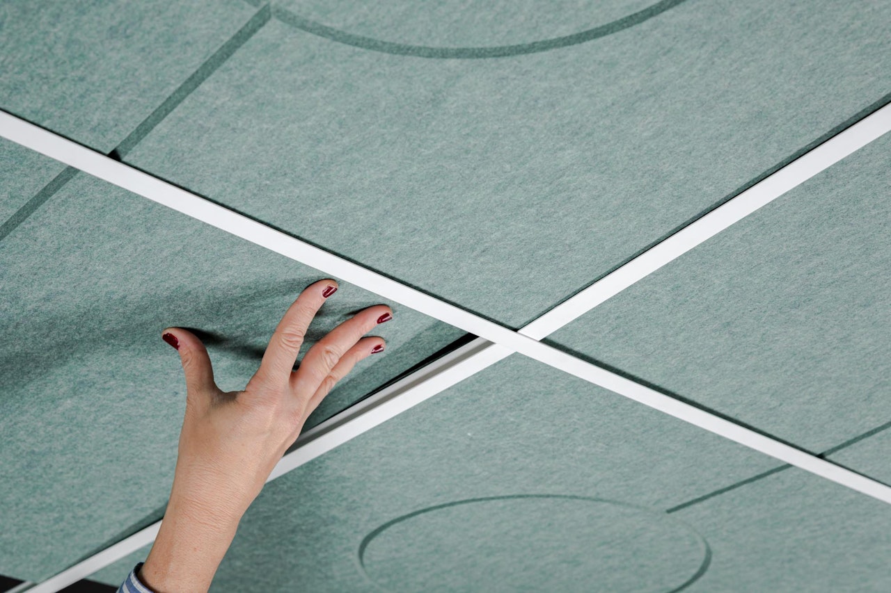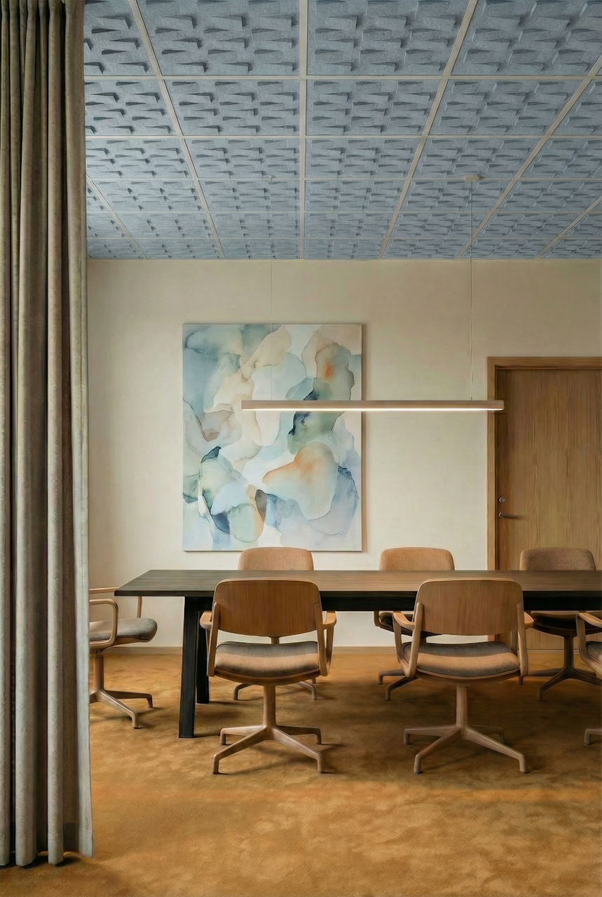Ceilings are one of the most underused surfaces in acoustic design. In open interiors, sound travels upward, accumulating overhead and bouncing back as reverberation, background noise, and lost speech clarity. BuzziCloud brings modular, pattern-based acoustic treatment to the ceiling, giving architects and designers a high-performance surface where it matters most.
