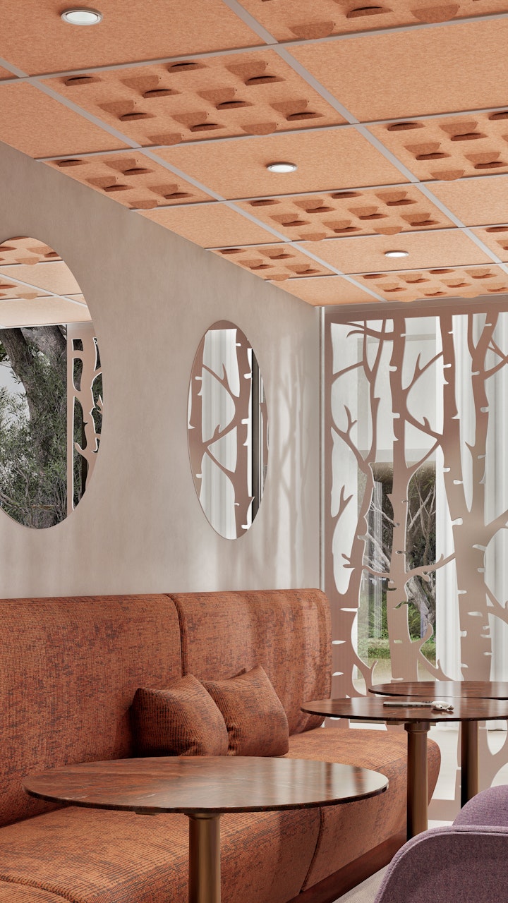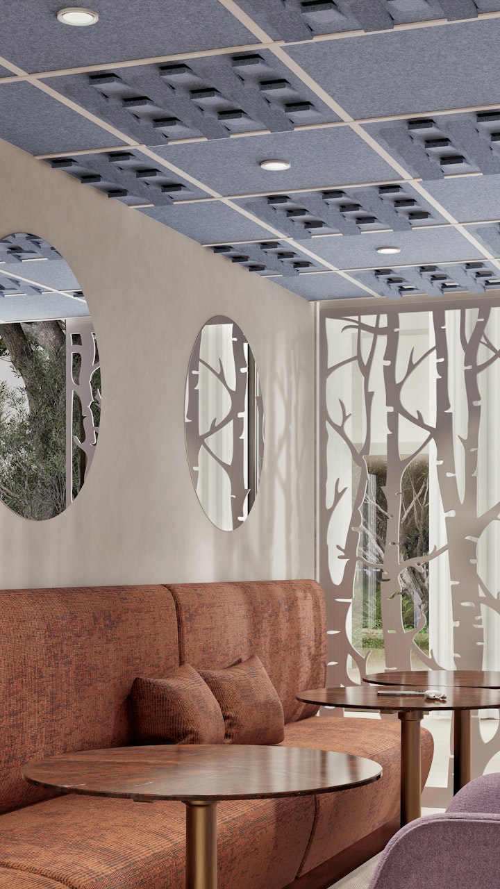 Italy's most ambitious sustainable hotel opened in Rimini in October 2024. From the moment guests enter the lobby, they feel the difference that acoustic design makes. Six BuzziSpace solutions were there to make that happen.