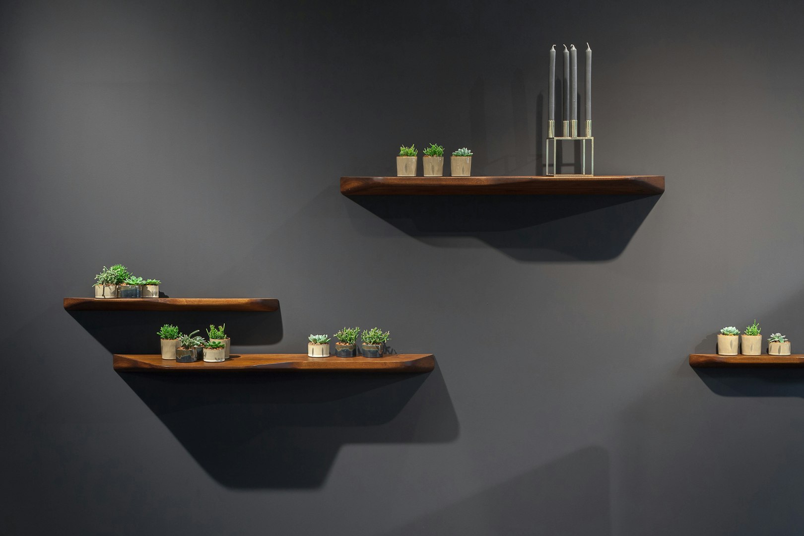 This sleek and simple shelf is carved from solid wood and hangs from the wall where it greets guests at home or in the office. It is a handy place to solve all of life’s little needs.