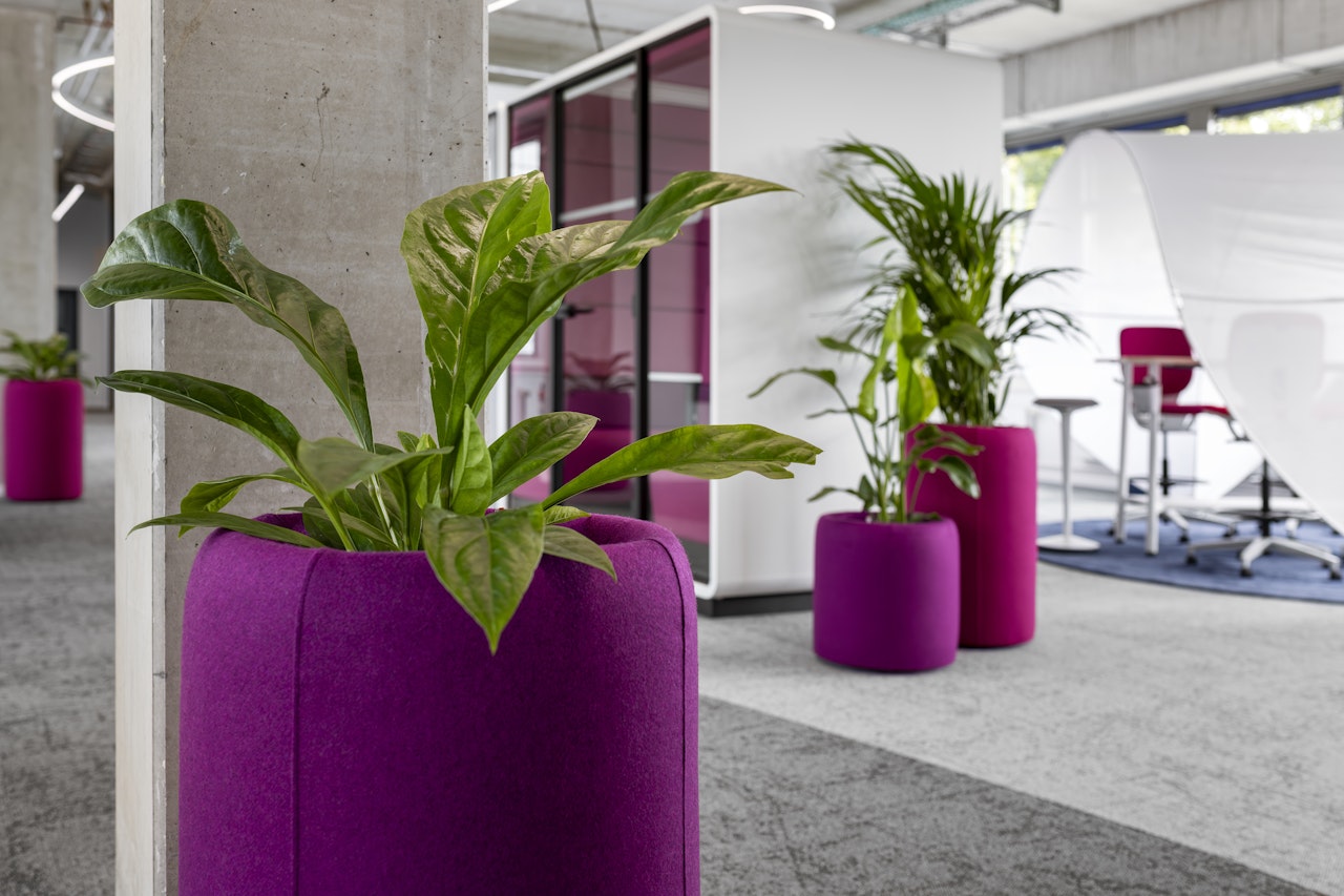 BuzziPlanter is the perfect fusion of a planter and an acoustic element. The upholstered colorful pot, made from high-density foam, has the acoustic superpower to absorb excessive noise in open spaces, creating healthier environments for people to thrive.