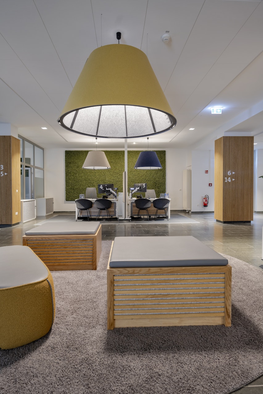 Prevent eavesdroppers from hearing your private conversations and reduces external noise levels to a minimum. This noise-reducing pendant accommodates the demand for both sound absorption and light.