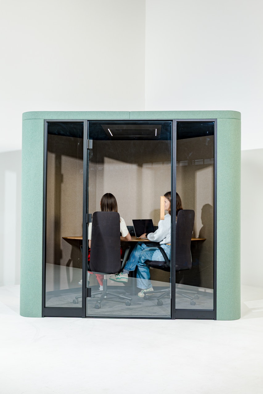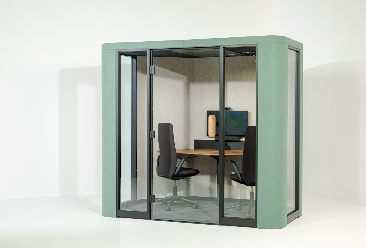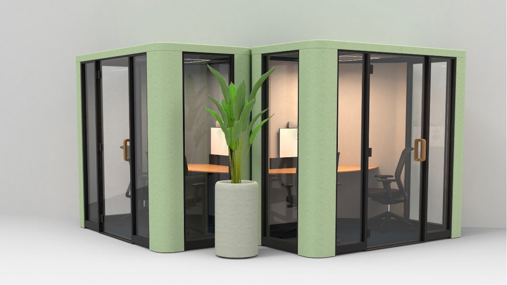 Not every office is a rectangular box, so why should your privacy booth be? BuzziWX DUO is a smarter solution that bends around your floor plan, giving employees a space to focus, connect, or take a call without wasted space or compromise."
