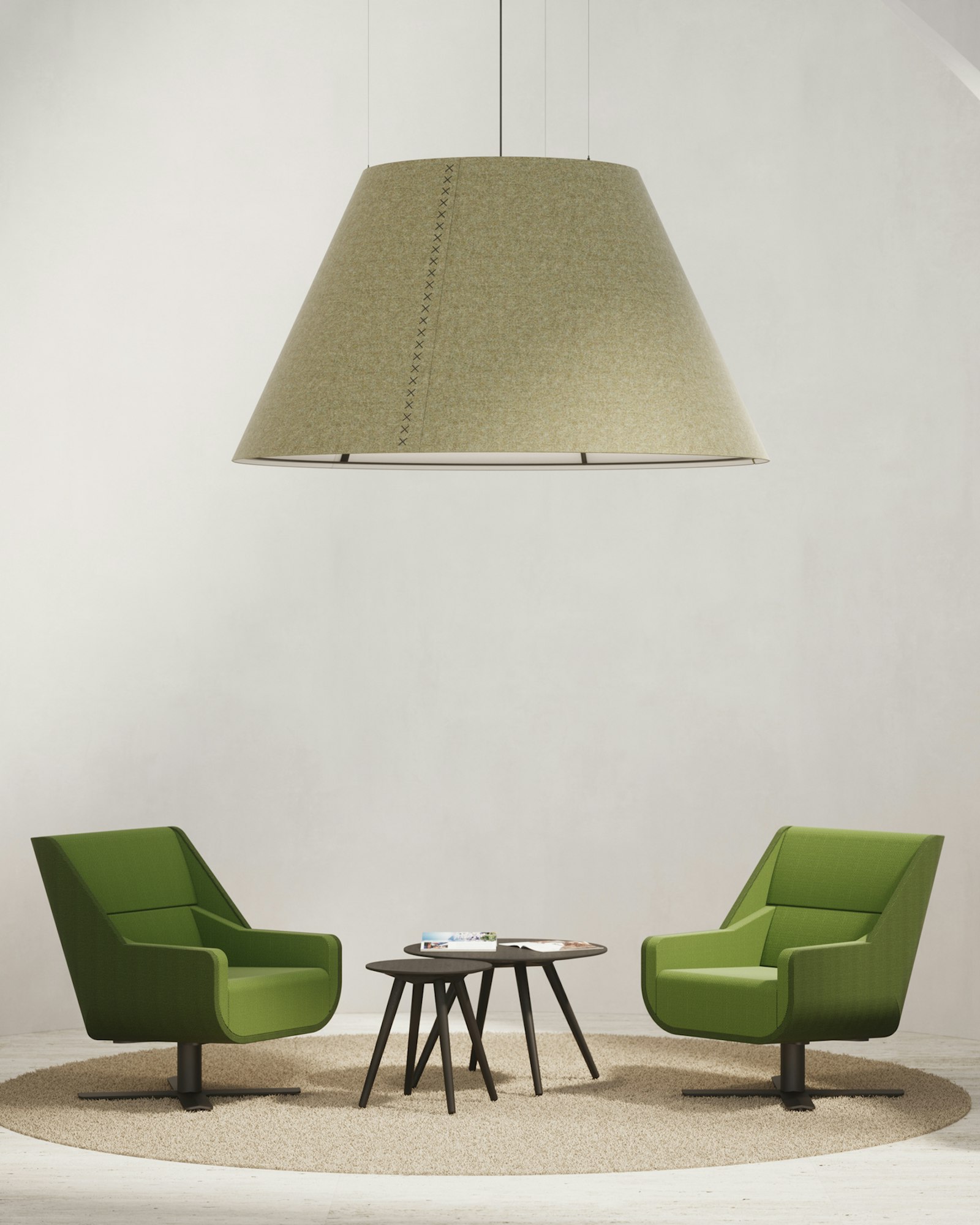 Hover a cluster of BuzziCone pendants above the table to lower the ceiling visually and create a more intimate atmosphere. The large surface of BuzziCone’s felt body creates an acoustically well-balanced space to keep focus and level up your teamwork.