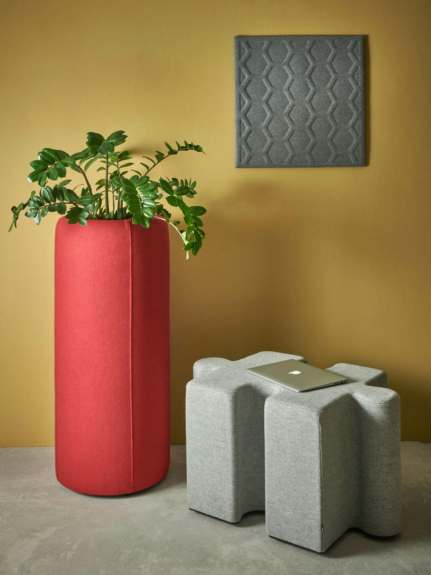 Akustikelemente können überall in Ihrem Arbeitsbereich platziert werden. Sie können auch als Kunstwerk an der Wand zu einem dekorativen Hocker oder einer Topfpflanze werden.