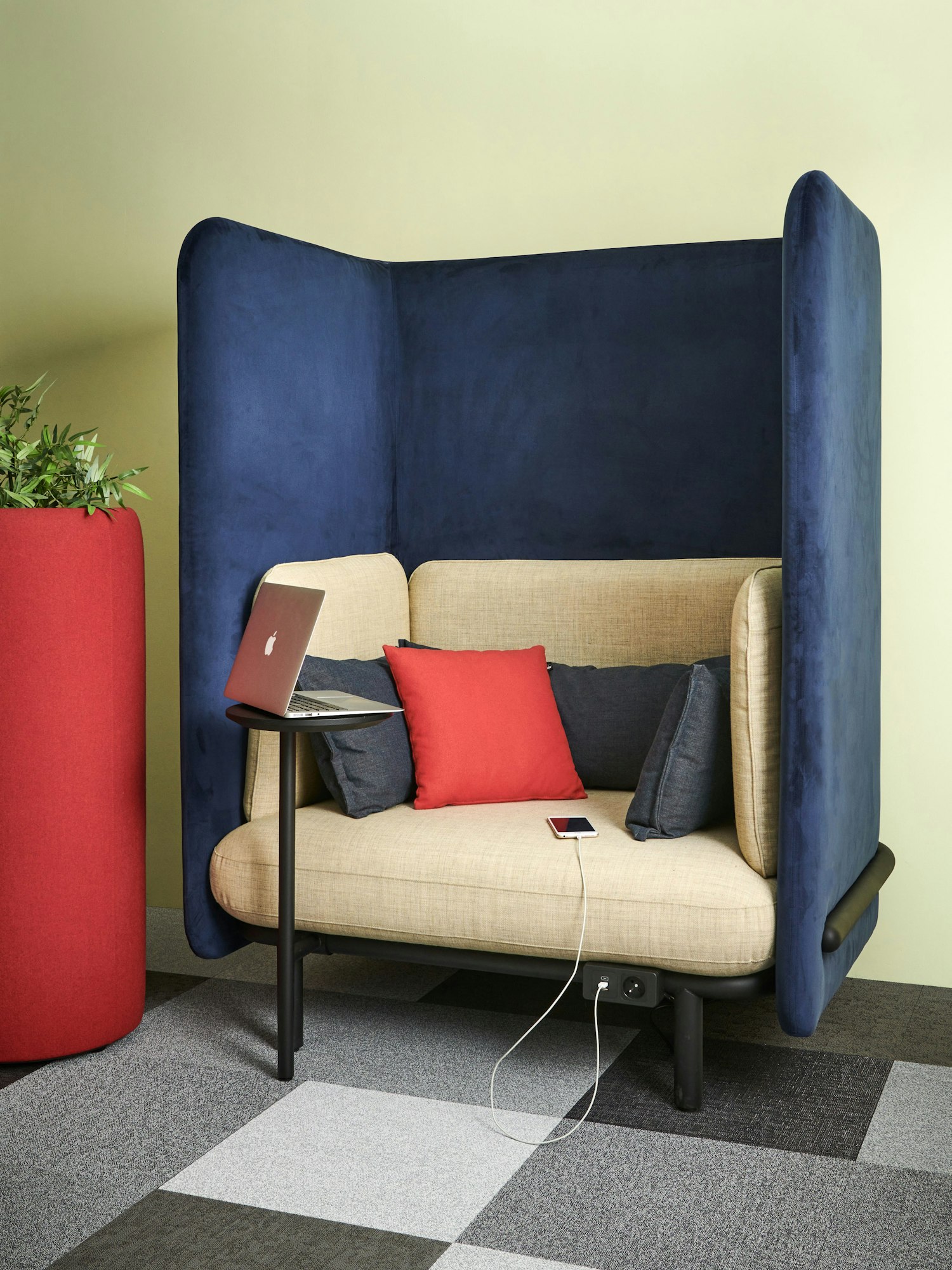 Ein privater Raum im Arbeitsbereich ist immer wichtiger geworden. Daher ist es ratsam, ihn mit zusätzlichen Farbtupfern spielerisch und kreativ zu gestalten.