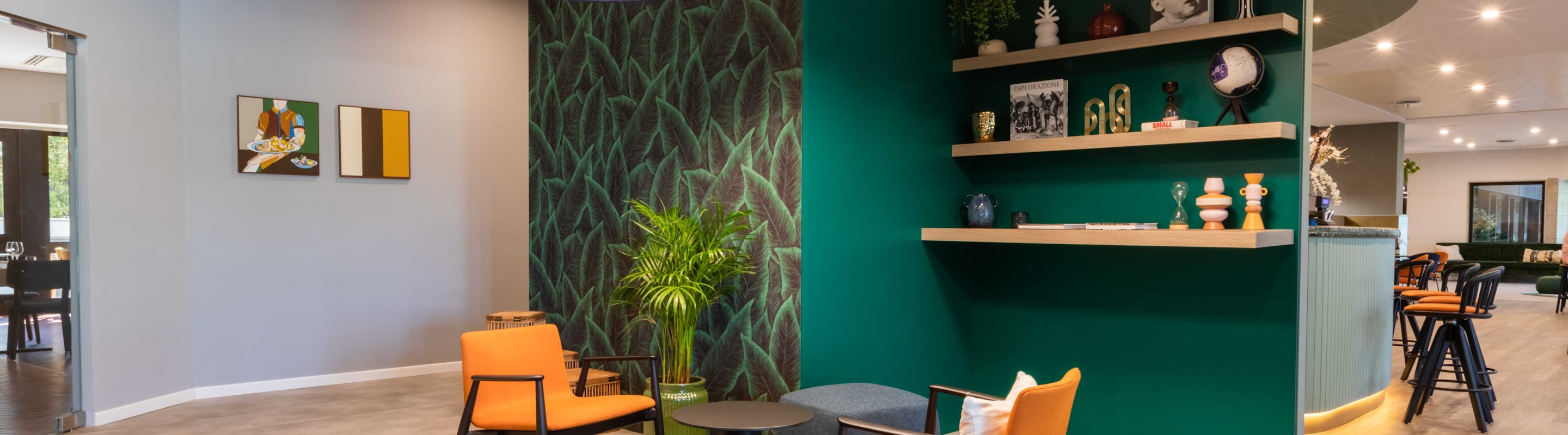 Nos solutions d'éclairage acoustique BuzziPleat Light et BuzziJet créent un espace accueillant pour les clients et les employés de l'hôtel.