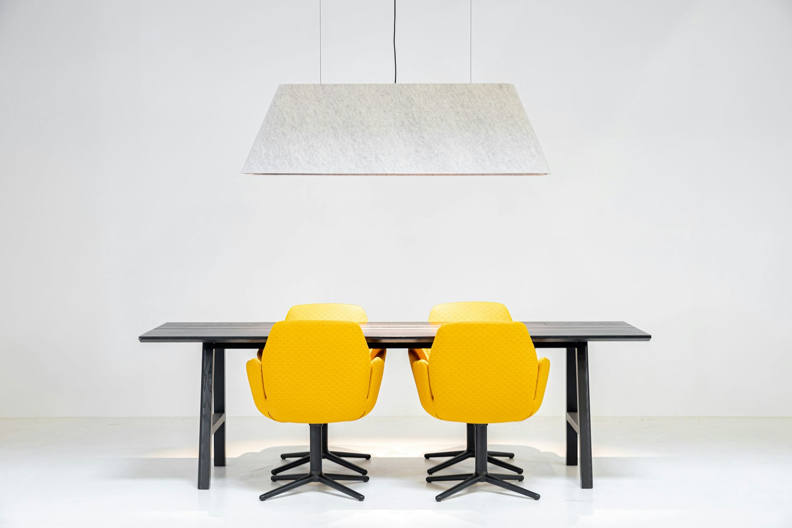 Notre lampe suspendue emblématique BuzziShade a été réinterprétée avec une touche d'élégance. BuzziShade Square Medium et BuzziShade Square Beam sont des solutions d'éclairage élégantes qui contribuent également à réduire le bruit. Il est temps de les faire briller !
