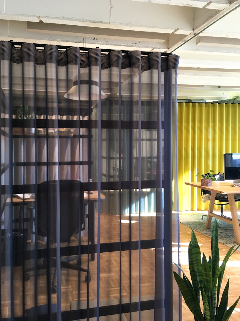 Doux et transparent, Noon présente des rayures subtiles. Celles-ci sont dans le sens de la trame, de sorte que lorsque le rideau est suspendu, elles sont verticales. Les fils de Noon ont été produits avec de petites irrégularités, ce qui lui donne un aspect naturel.