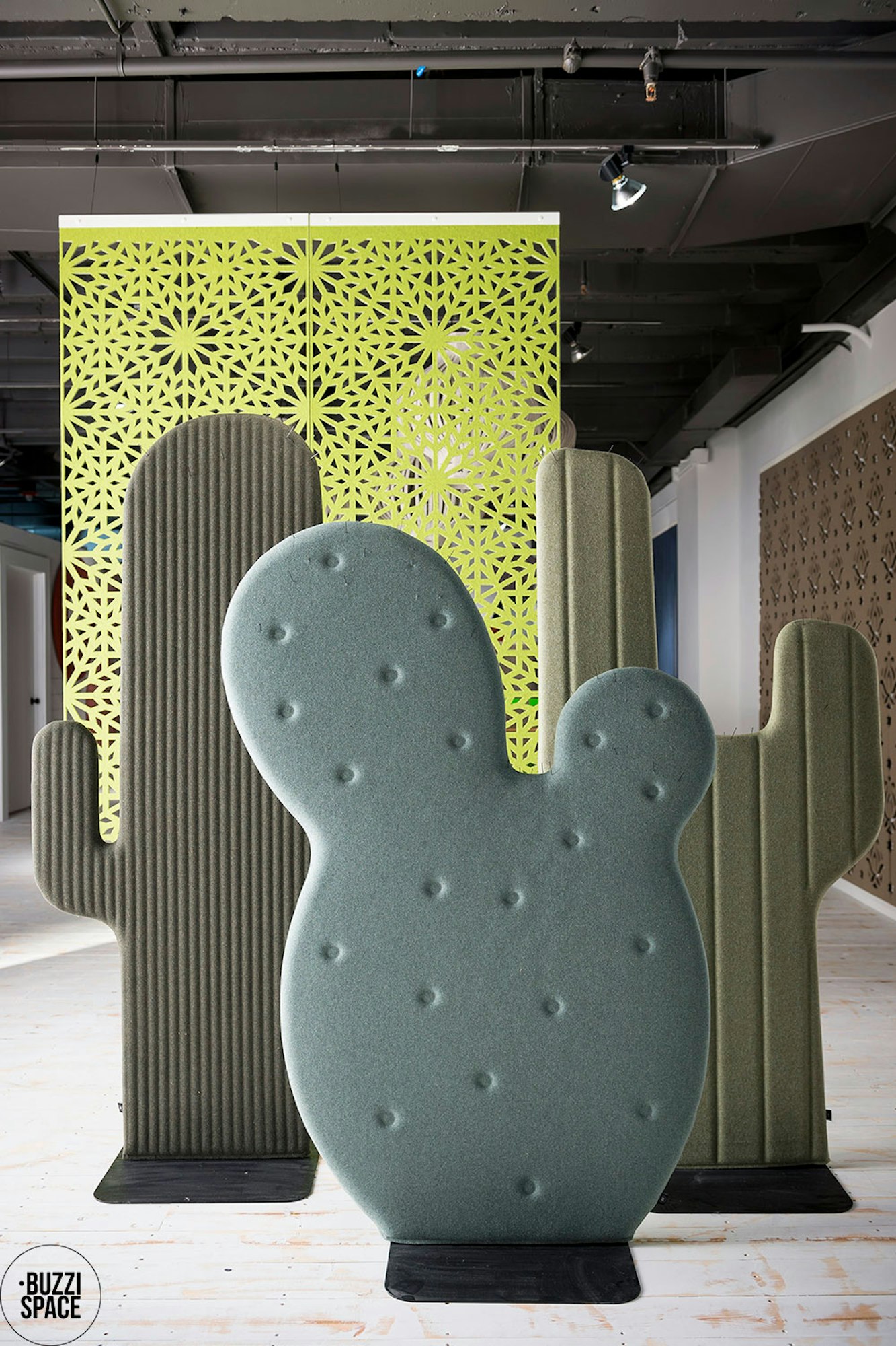 Si les vraies plantes sont trop encombrantes, BuzziCactus et BuzziPlant sont d'excellentes alternatives. Ces charmantes cloisons de bureau autoportantes sont créées à partir d'un noyau structurel en carton alvéolé et recouvertes de mousse acoustique, ce qui permet d'absorber les sons tout en ajoutant un élément de design ludique à tout espace de travail. Pour vous les approprier, collez-y des épingles et des notes pour ajouter une touche personnelle.