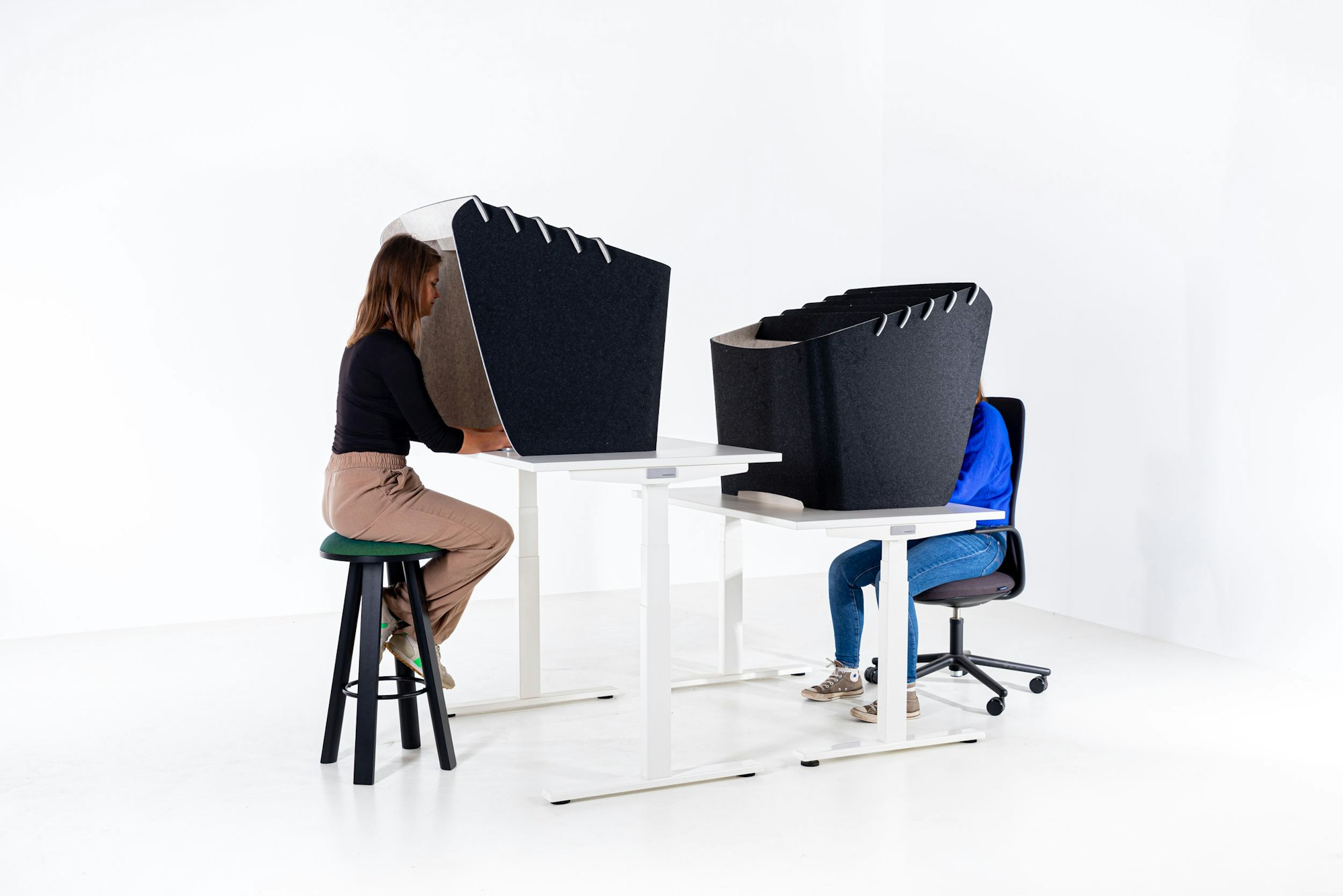 Vous cherchez un moyen simple et efficace de créer des espaces d'intimité ou des postes de travail debout ? Le BuzziHug, extrêmement fonctionnel, est un équilibre parfait entre une cabine de confidentialité semi-fermée et un poste de travail individuel debout. Cette solution acoustique semi-fermée offre un espace de travail privé tout en garantissant une distance physique, afin que vous puissiez continuer à travailler ensemble.