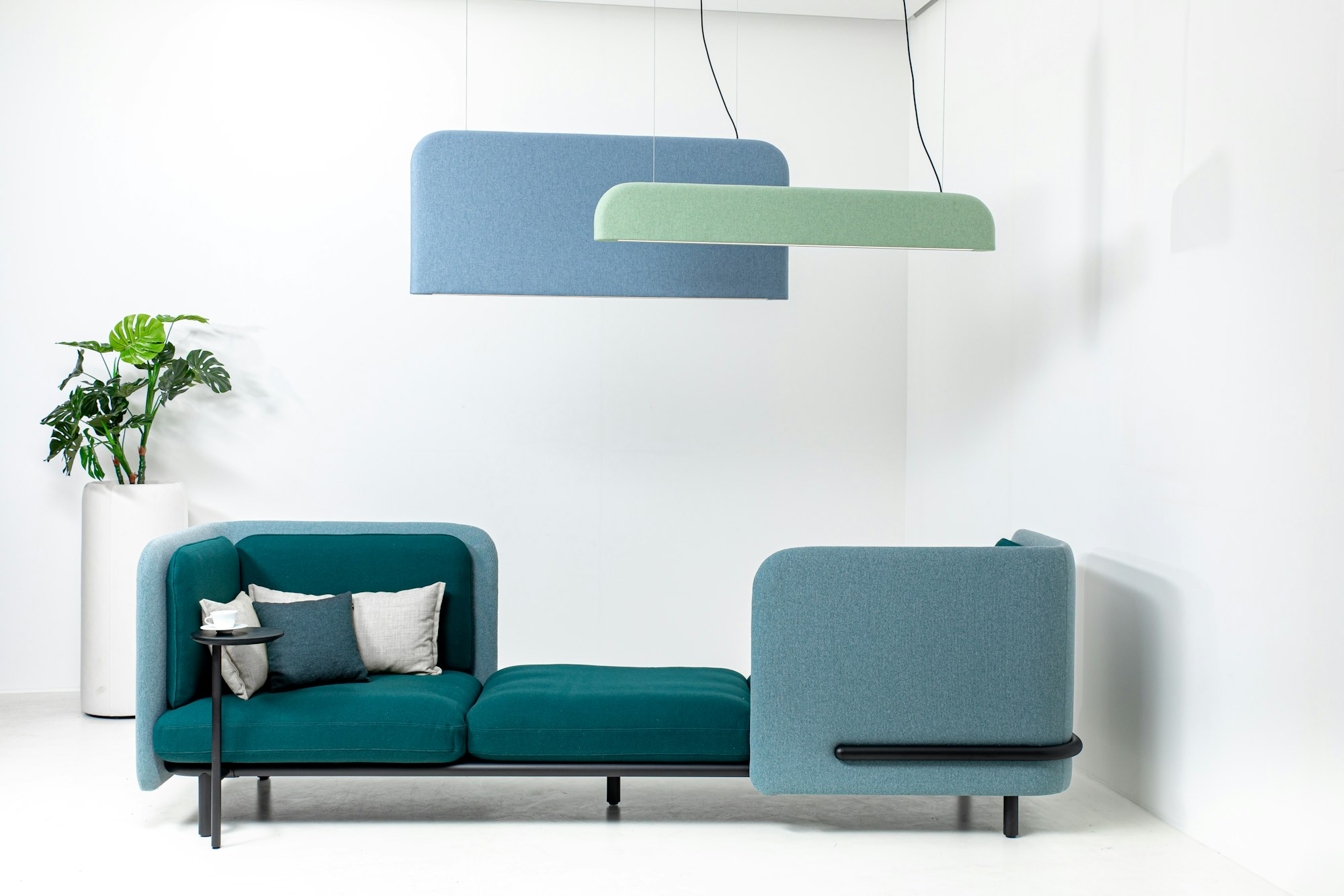 Les espaces sociaux et de détente doivent également être équilibrés sur le plan acoustique afin que les employés puissent apprécier leurs interactions et se ressourcer avant une tâche intimidante. Essayez d'ajouter des éléments acoustiques ludiques tels que notre populaire BuzziPleat Light ou notre fantaisiste BuzziHat. Pour quelque chose d'un peu plus flexible, BuzziJet Standing ne nécessite aucune installation et peut être positionné à différents endroits. BuzziJet Standing peut également être gradué pour créer différentes atmosphères.
