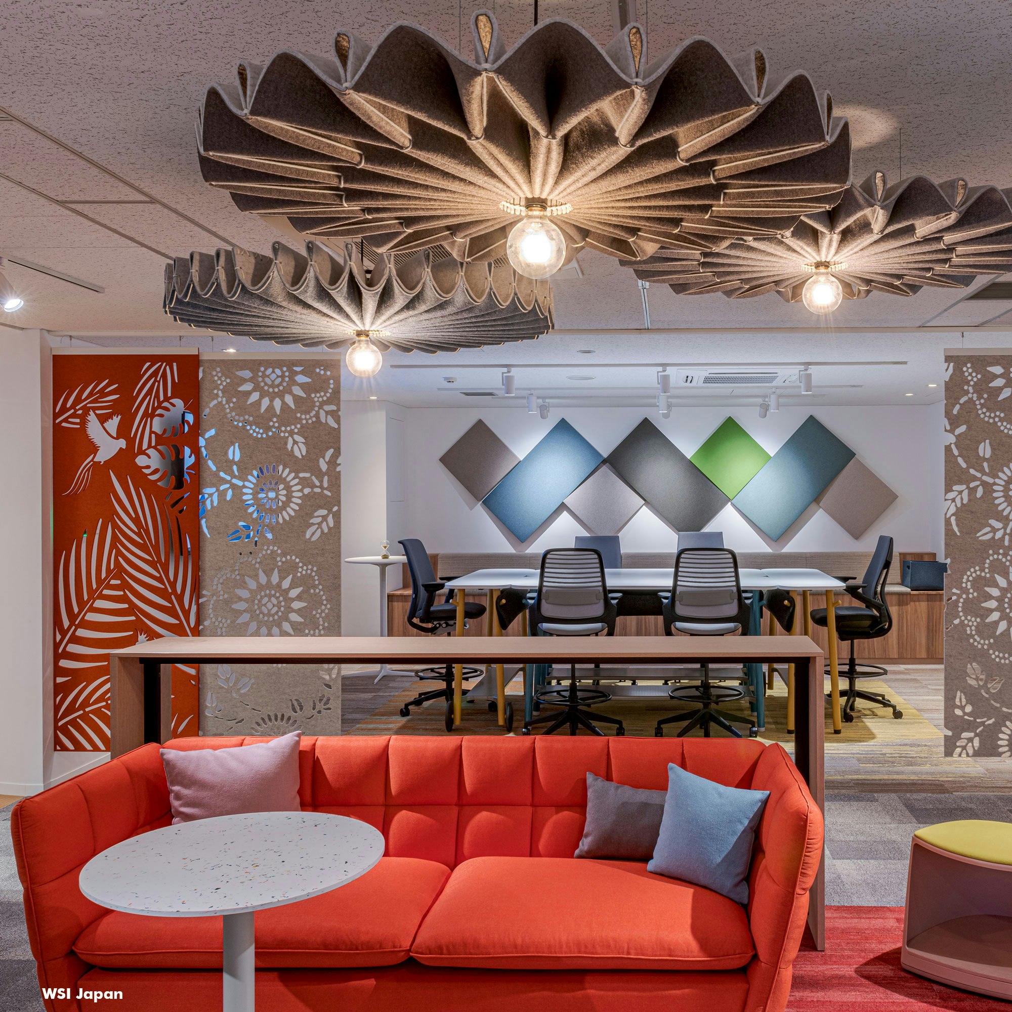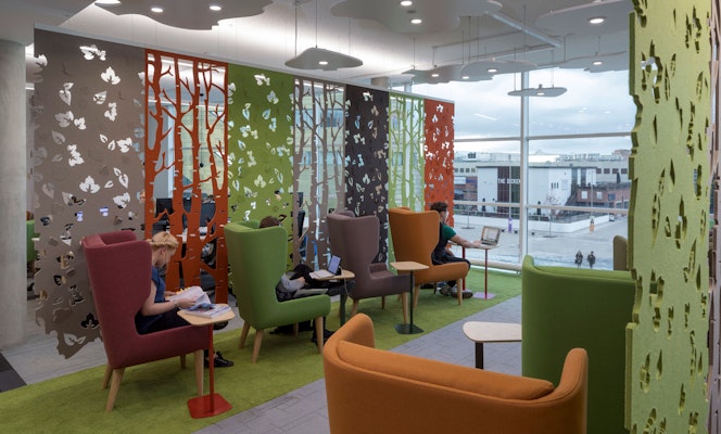 Flexible acoustic seating solutions to help design areas for informal meetings and collaborations, all while encouraging a sense of togetherness.