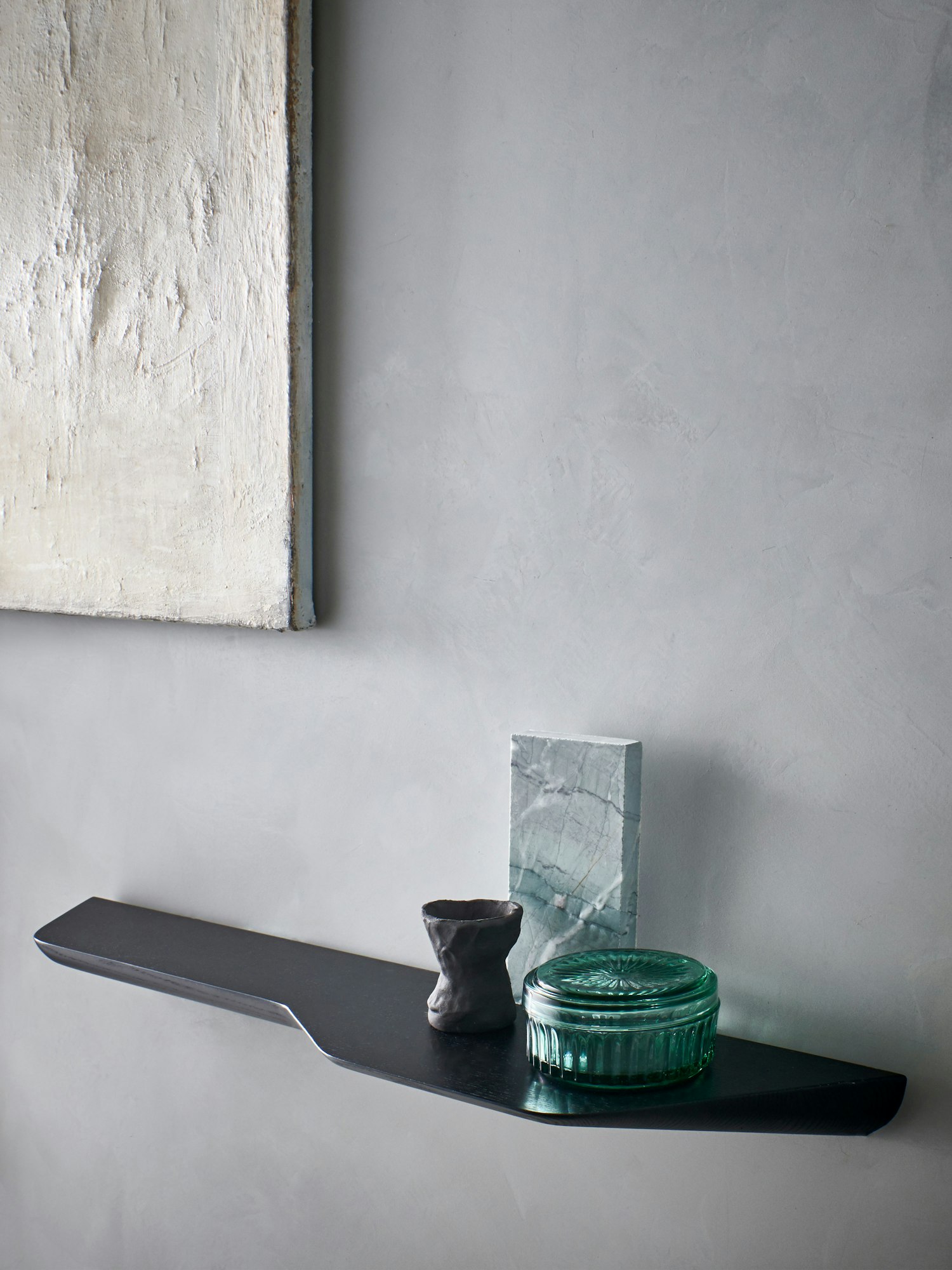 Des éléments naturels, tels que le bois, peuvent également être ajoutés pour créer une atmosphère calme et chaleureuse. Même en teinte noire cendrée, le caractère du bois reste visible.