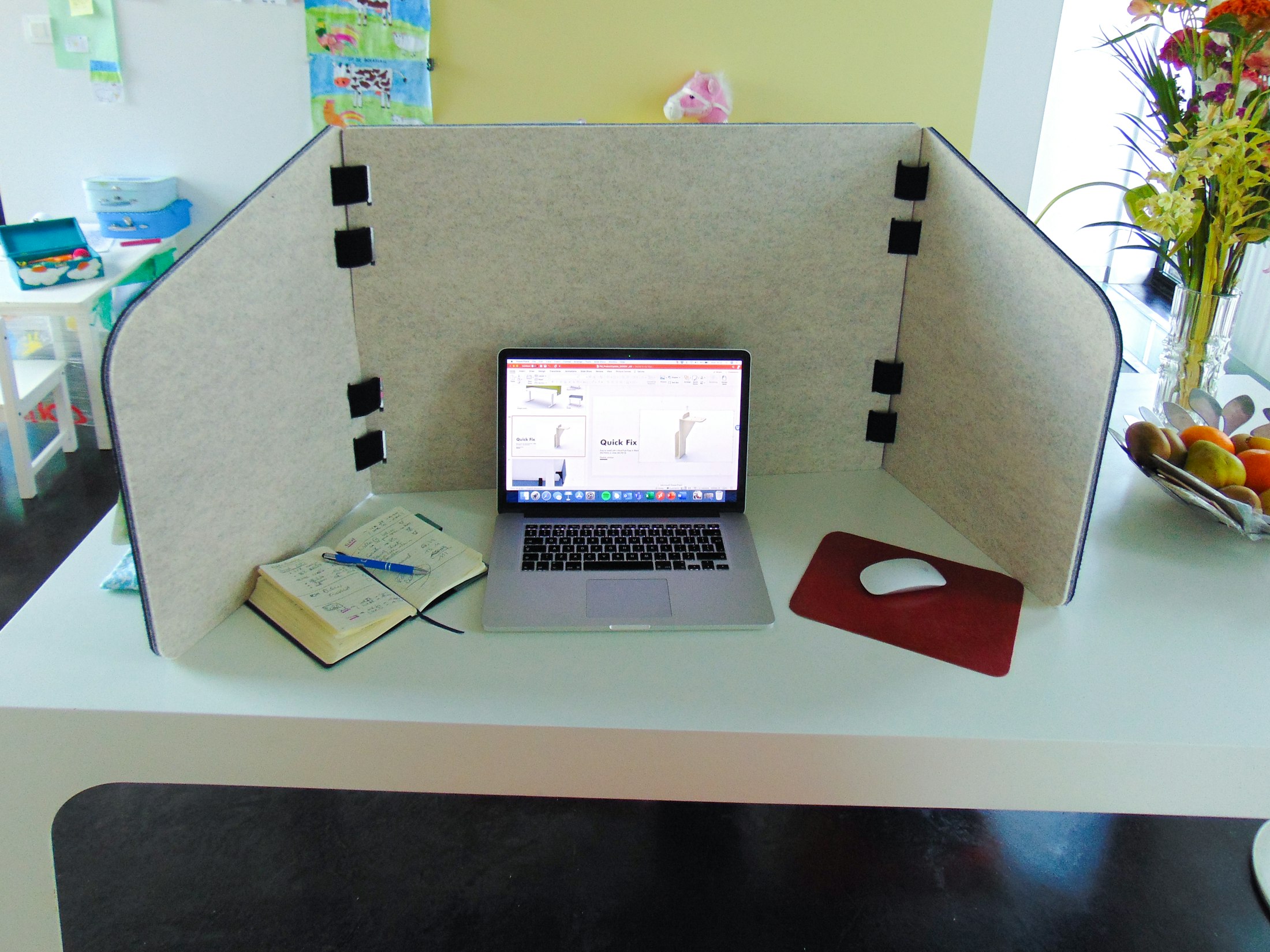 Le bureau autonome et la cloison de séparation peuvent être utilisés conjointement pour créer un bureau temporaire n'importe où dans la maison, que ce soit dans la cuisine ou dans toute autre pièce commune partagée. Cette solution convient parfaitement aux parents qui travaillent et qui ont besoin d'isoler leurs enfants lors d'un appel vidéo important ! Bien entendu, nous avons pris en compte les personnes vivant dans de petits appartements en ville. Les deux versions de BuzziTripl Home Low et BuzziTripl Home High sont pliables et légères, ce qui permet de les ranger facilement, que ce soit dans un placard ou sous un lit.