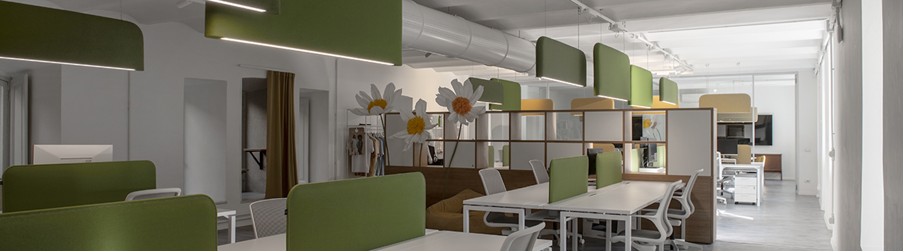 Une sélection de solutions acoustiques, BuzziSkin, BuzziTube, BuzziDesk, et BuzziShield Light, a été intégrée dans l'ensemble de l'intérieur pour améliorer le confort sans compromettre le style.