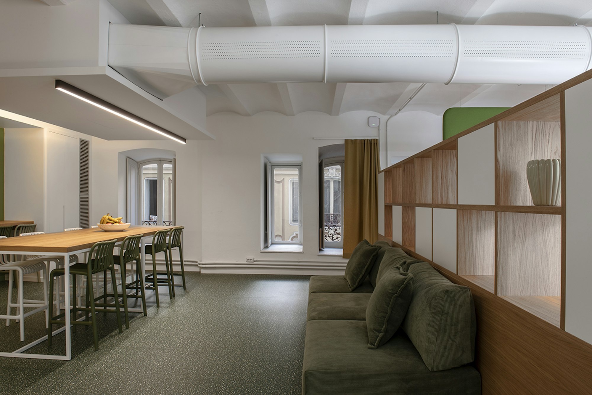 Le résultat est un intérieur bien pensé qui respecte le caractère du bâtiment d'origine tout en offrant un environnement dynamique et serein qui favorise la créativité et le bien-être.