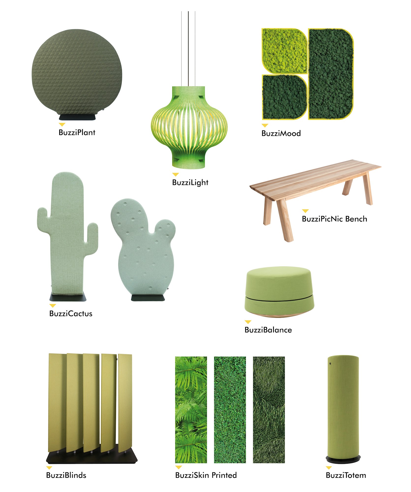 La superposition de tons verts audacieux est un bon premier pas vers la création d'un environnement inspiré par la nature, mais pourquoi ne pas aller jusqu'au bout avec notre nouveau BuzziMood, qui est fait de mousse qui absorbe les sons par nature ?