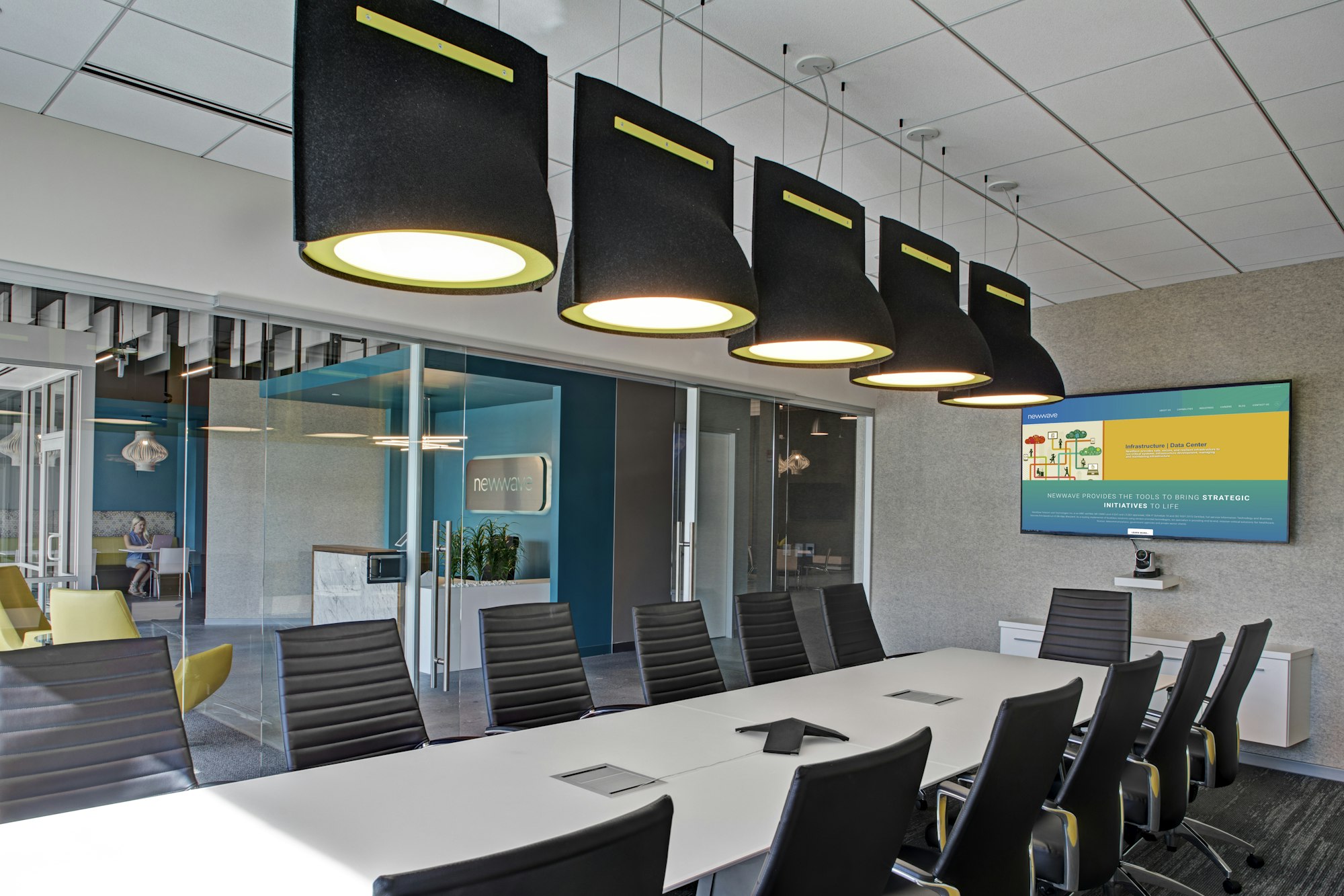 Dans l'espace rénové de New Wave, Maryland, les designers d'Arris Design ont cherché à créer des lieux qui inspirent l'innovation et la pensée créative - y compris dans les salles de réunion et de conférence ! Avec sa forme emblématique, BuzziBell apporte de la douceur à l'espace tout en réduisant le bruit, afin que les employés puissent rester concentrés et apporter leurs idées les plus brillantes à la table !