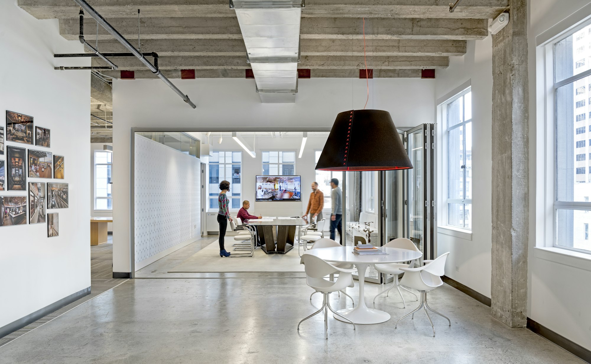 Le modèle populaire du bureau ouvert relie les travailleurs entre eux. Mais en même temps, le bruit peut être un défi. Au bureau NicholsBooth, les concepteurs ont choisi d'ajouter BuzziShade pour créer une petite zone silencieuse pour travailler et se rencontrer. BuzziShade est conçu pour les environnements à grande échelle.