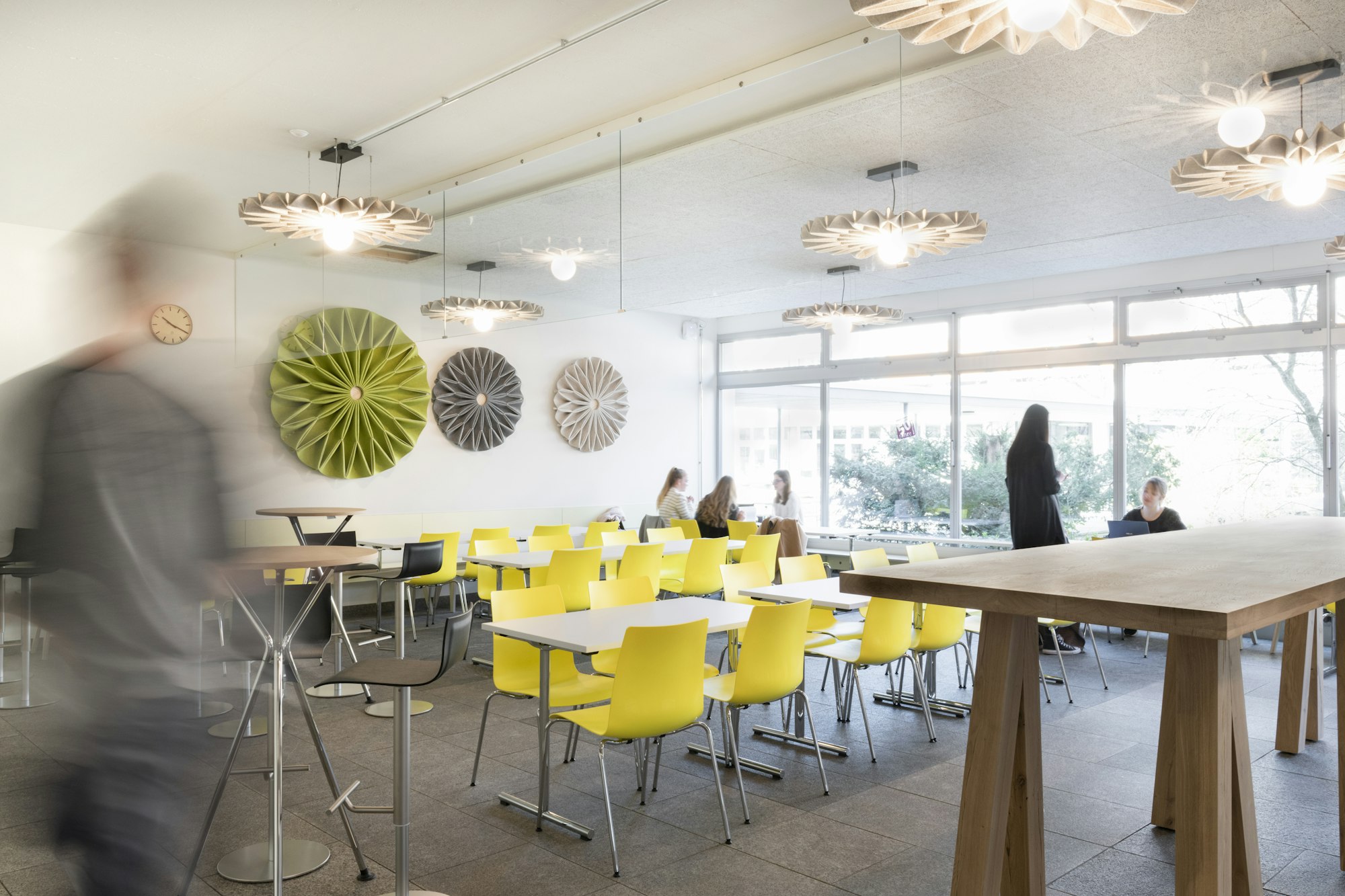 Souvent, les espaces sont déjà occupés par d'autres meubles, et parfois le plafond l'est aussi. Mais entre le sol et le plafond, il ne se passe pas toujours grand-chose. Dans de tels espaces, BuzziPleat LED peut être un excellent complément. Avec ses plis architecturaux, il piège les ondes sonores, les empêchant de rebondir sur les surfaces dures. Simultanément, il fournit une grande quantité de lumière dans les zones communes ou les espaces de travail. Pour un impact visuel accru, combinez une série de BuzziPleat suspendus et fixés au mur, comme ici à l'Université de Berne.