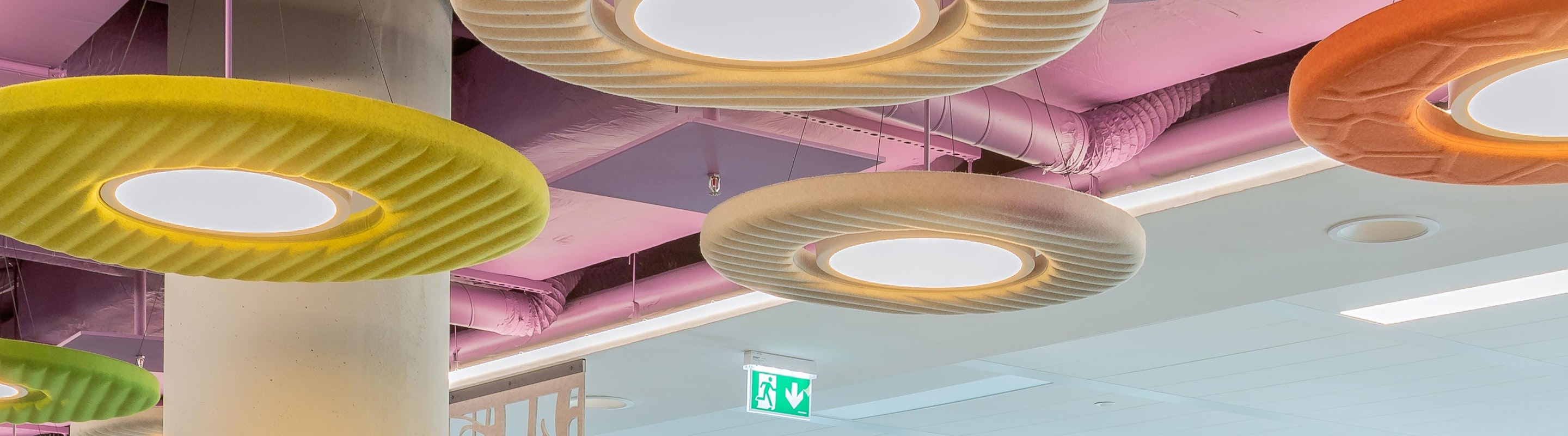 Nos solutions d'éclairage acoustique BuzziBell et BuzziShade permettent aux employés de Deloitte de trouver un équilibre entre le travail et les loisirs.