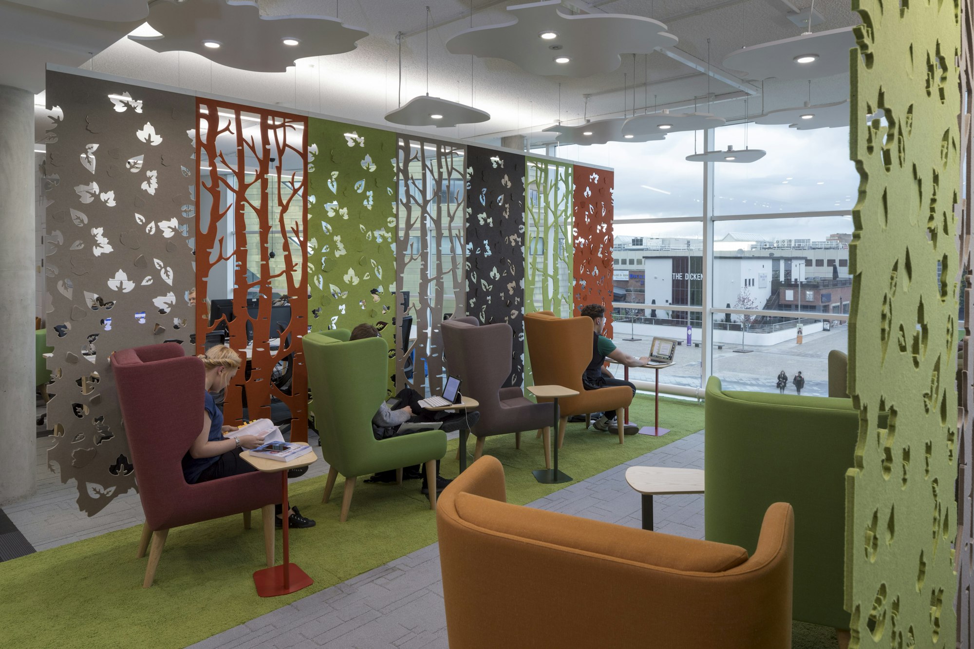 En plus de lutter contre la mauvaise acoustique, nos solutions ont permis de créer des espaces de collaboration pour l'école technique.