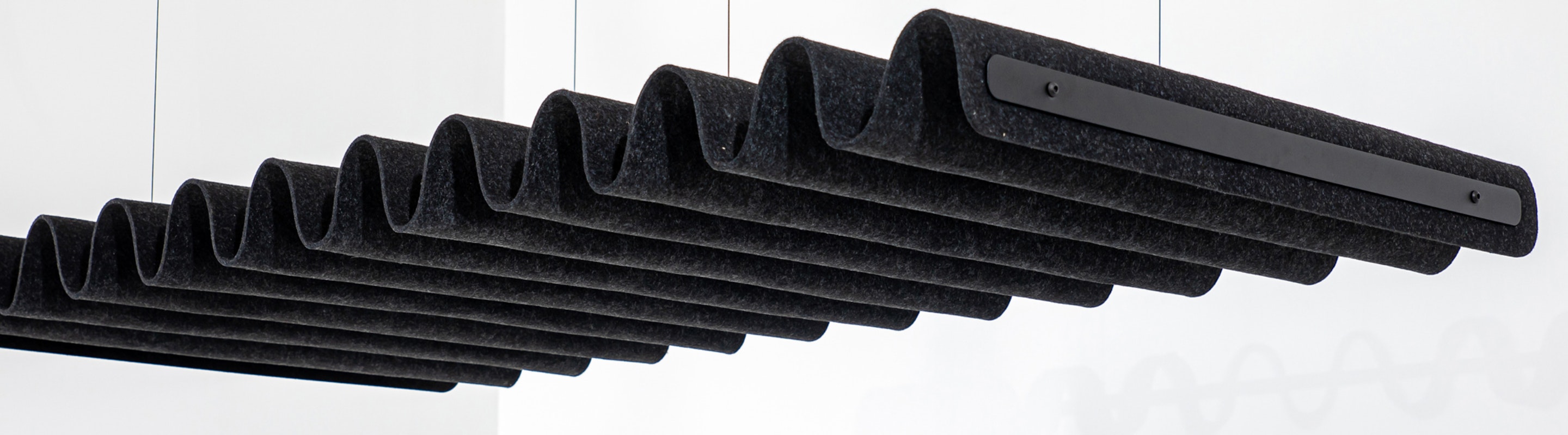 Améliorez votre plafond avec notre dernière solution acoustique fabriquée à partir du matériau durable BuzziFelt. Inspiré par les longueurs d'onde, le design de BuzziFold atténue efficacement les bruits excessifs tout en améliorant l'aspect général de votre espace.