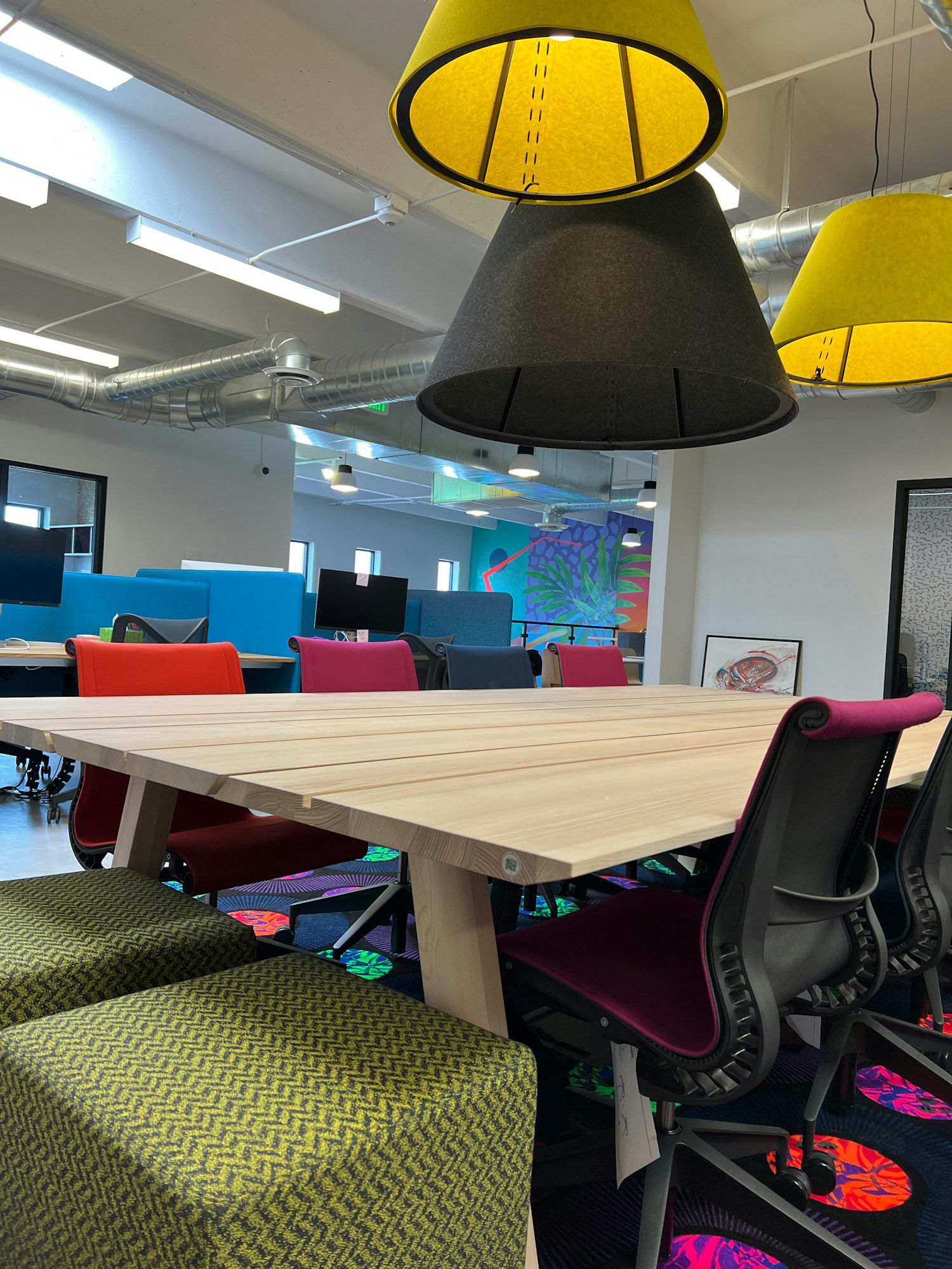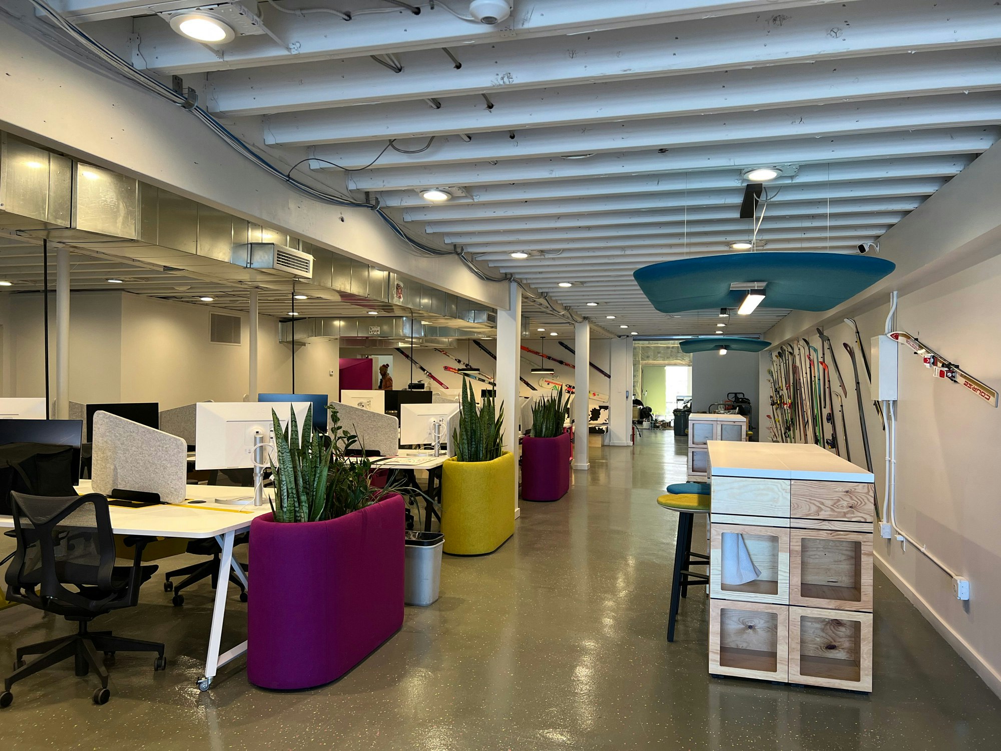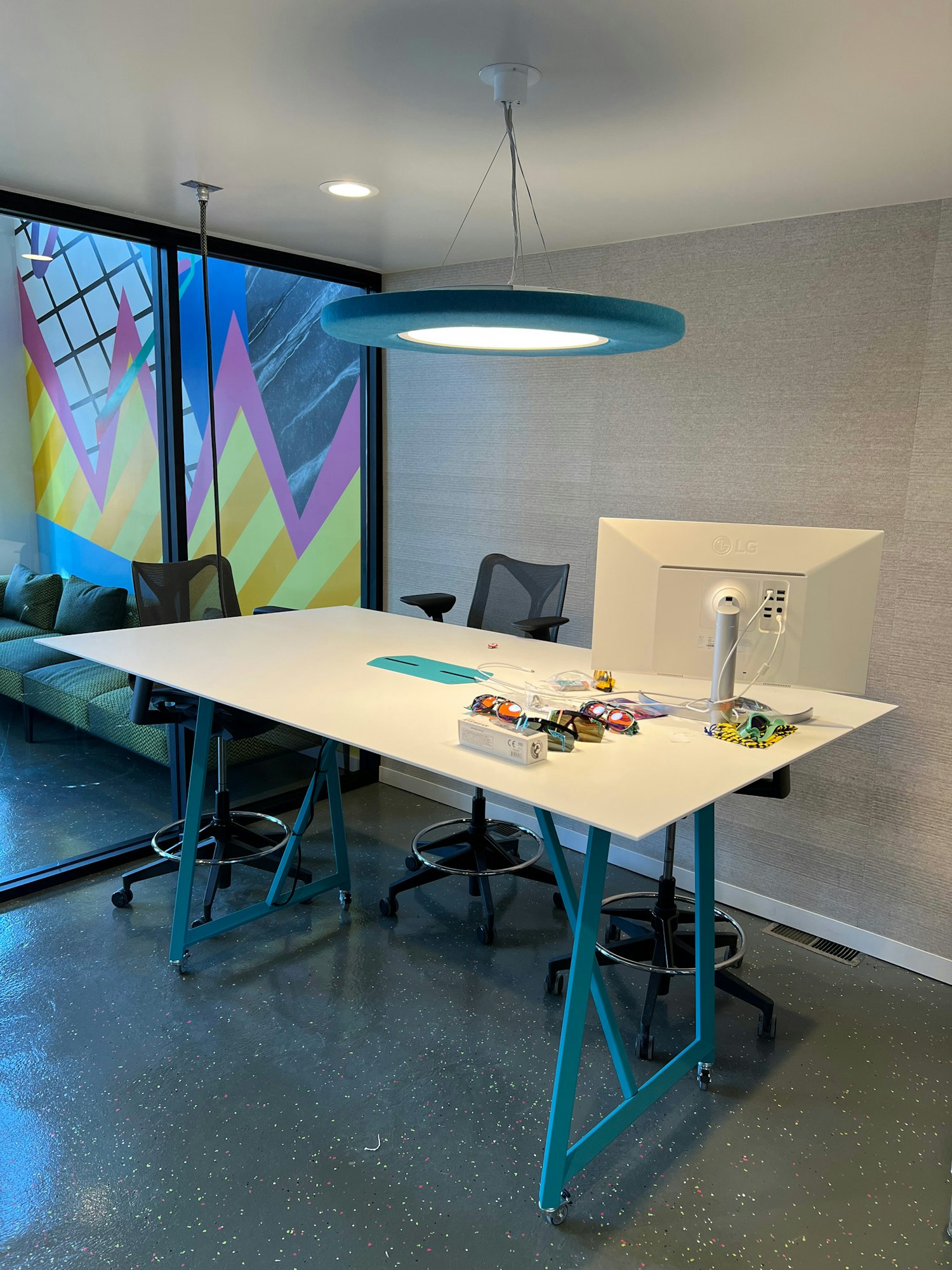 Cherchant à créer son premier espace de travail physique, la marque de mode et d'accessoires Pit Viper a fait appel à l'équipe Project Care de BuzziSpace et au consultant acoustique mondial, Richard Ellerbeck, ainsi qu'à la designer Olivia Hyde de Havana Hyde pour l'aider à améliorer l'espace de travail de ses employés afin qu'ils puissent satisfaire leurs besoins et leurs désirs créatifs. Baptisé The Money Factory, l'objectif principal était de transformer le grand espace industriel en un véritable espace de travail pour l'équipe grandissante de Pit Viper, tout en conservant l'éthique audacieuse et vibrante de l'entreprise. Comme l'a dit Hyde à propos du projet, il faut rester "100 % rad et 0 % corporate". Par conséquent, il était important de fournir à la fois un éclairage et un confort acoustique pour une variété de situations de concentration et de collaboration tout en incarnant l'ADN de l'entreprise Pit Viper.