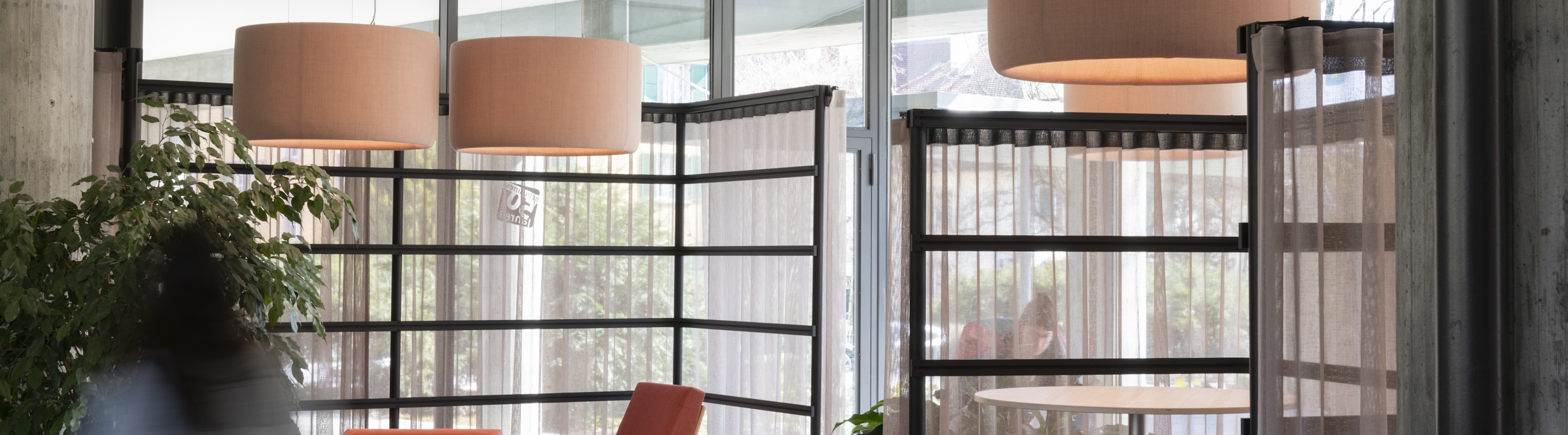 Parlons donc de microenvironnements. Nous utilisons ce terme pour décrire de petites zones distinctes séparées de leur environnement par diverses caractéristiques, par exemple le niveau d'intimité, le type de siège, l'éclairage et le poste de travail. Les microenvironnements permettent de délimiter des zones dans les espaces ouverts et offrent aux personnes la possibilité d'avoir une certaine intimité sans perdre le contact avec leurs collègues.