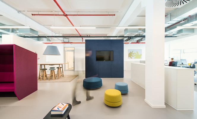 Entrez dans le bureau de Volkswagen Financial Service à Berlin, où les concepteurs ont créé un environnement de travail moderne sans postes de travail statiques.