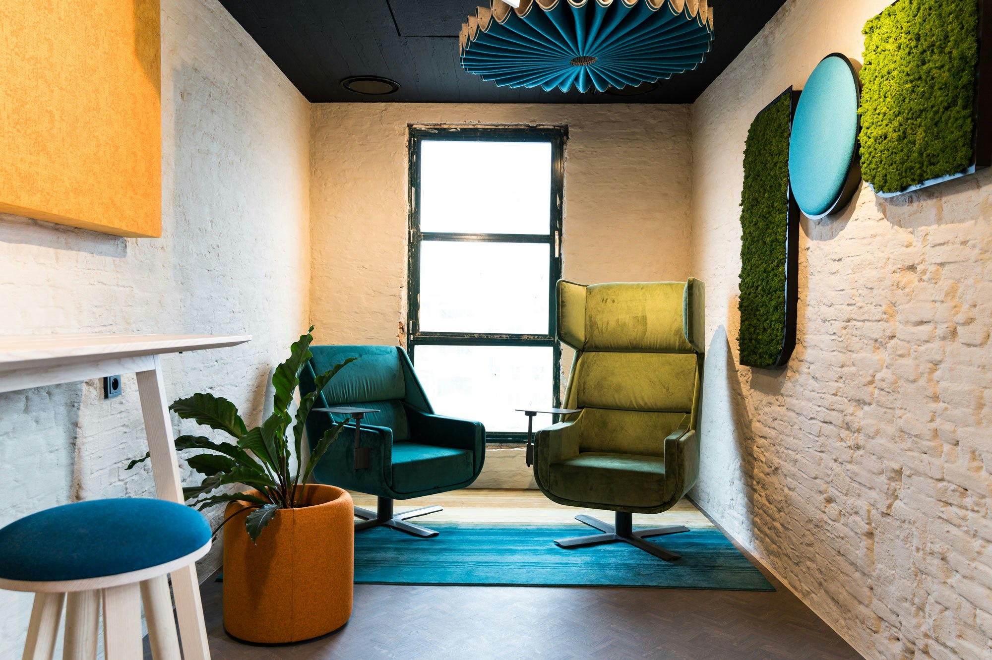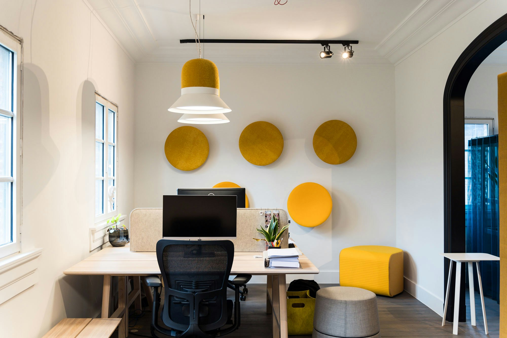 La création de centres de convivialité est l'occasion idéale pour les employeurs et les propriétaires d'entreprise de réimaginer leur espace de travail pour en faire un espace axé sur la communauté. L'intégration d'éléments d'inspiration biophilique, l'utilisation d'un éclairage adéquat et l'introduction de couleurs autres que les atmosphères chromatiques neutres traditionnelles, comme le gris, auront un impact positif sur la façon dont vos employés travaillent et se sentent au bureau. Il est donc important d'envisager des solutions acoustiques et des éclairages acoustiques inspirés de la nature dans le cadre de la conception initiale. De plus, le caractère unique de vos Hubs for Togetherness sur mesure réside dans la variété des couleurs, des textures et des matériaux que vous pouvez choisir.