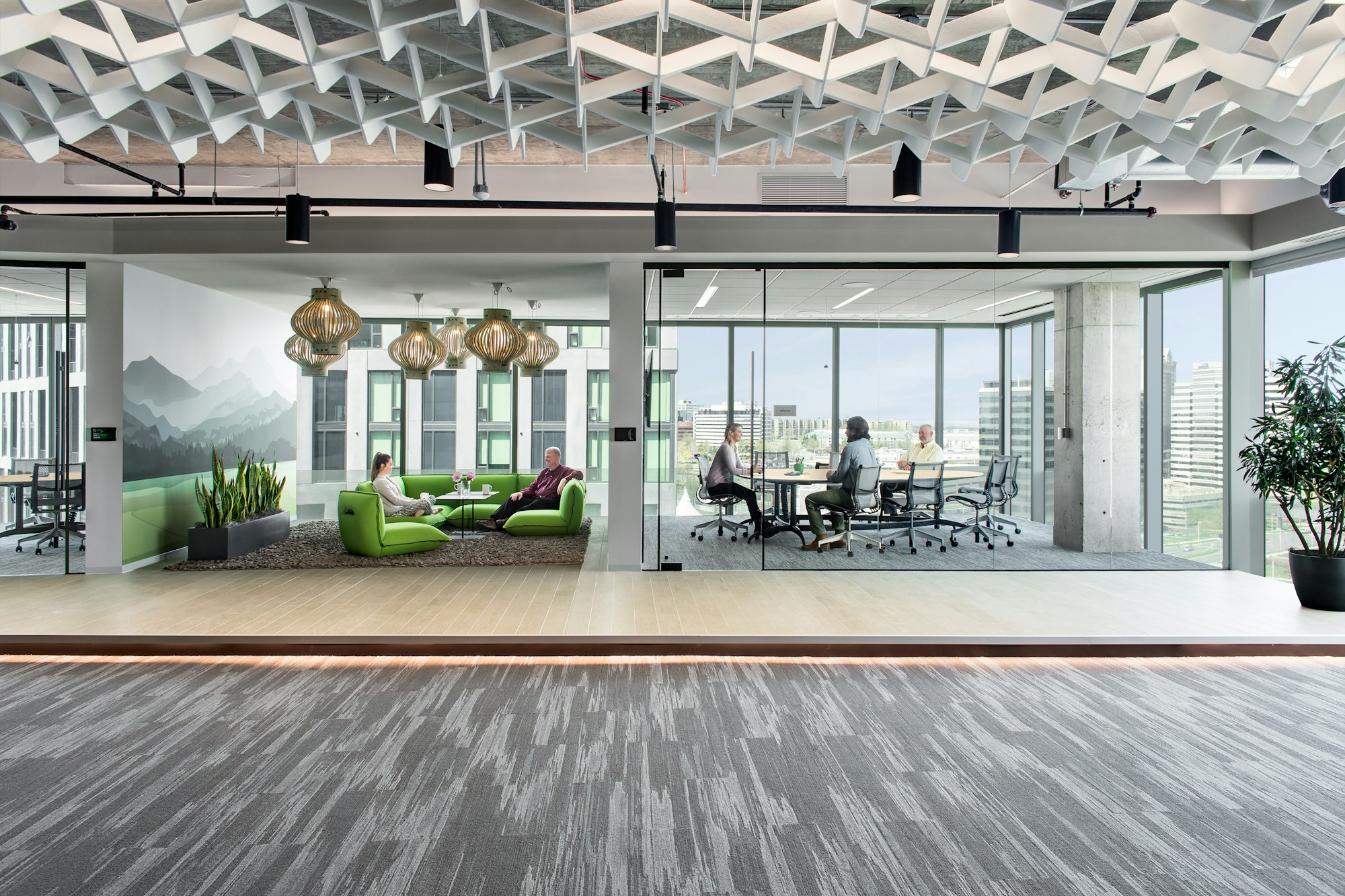 Le modèle populaire de l'open-space relie les gens. Mais en même temps, le bruit peut être un défi. Dans ce hall d'entrée, plusieurs BuzziShades remplissent magnifiquement l'espace, aidant à minimiser les bruits indésirables qui se propagent dans la pièce. BuzziShade Pendant est conçu pour les environnements à grande échelle.