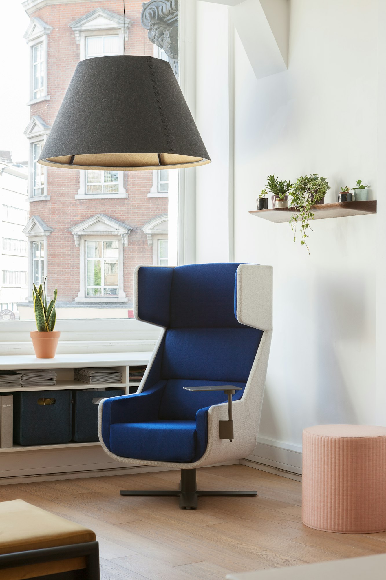 BuzziJet Standing est une solution d'éclairage acoustique fonctionnelle tout-en-un conçue pour convenir aux espaces flexibles et ouverts, tels que les coins de bureau et les halls d'entrée des hôtels. Extension du populaire BuzziJet, le BuzziJet Standing est un lampadaire à absorption acoustique qui offre les mêmes performances acoustiques que son prédécesseur, tout en étant extrêmement polyvalent. Son design aérodynamique permet aux ondes sonores de rebondir à l'intérieur de son corps circulaire, ce qui réduit le bruit.