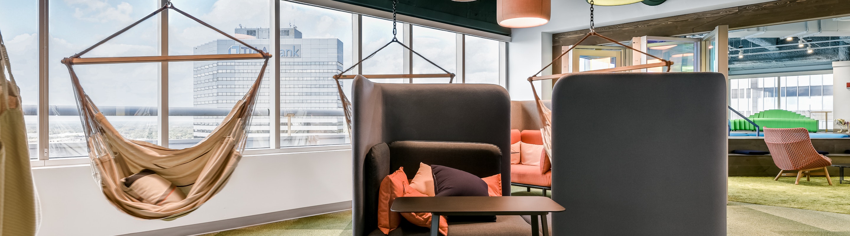 Flexible acoustic seating solutions to help design areas for informal meetings and collaborations, all while encouraging a sense of togetherness.