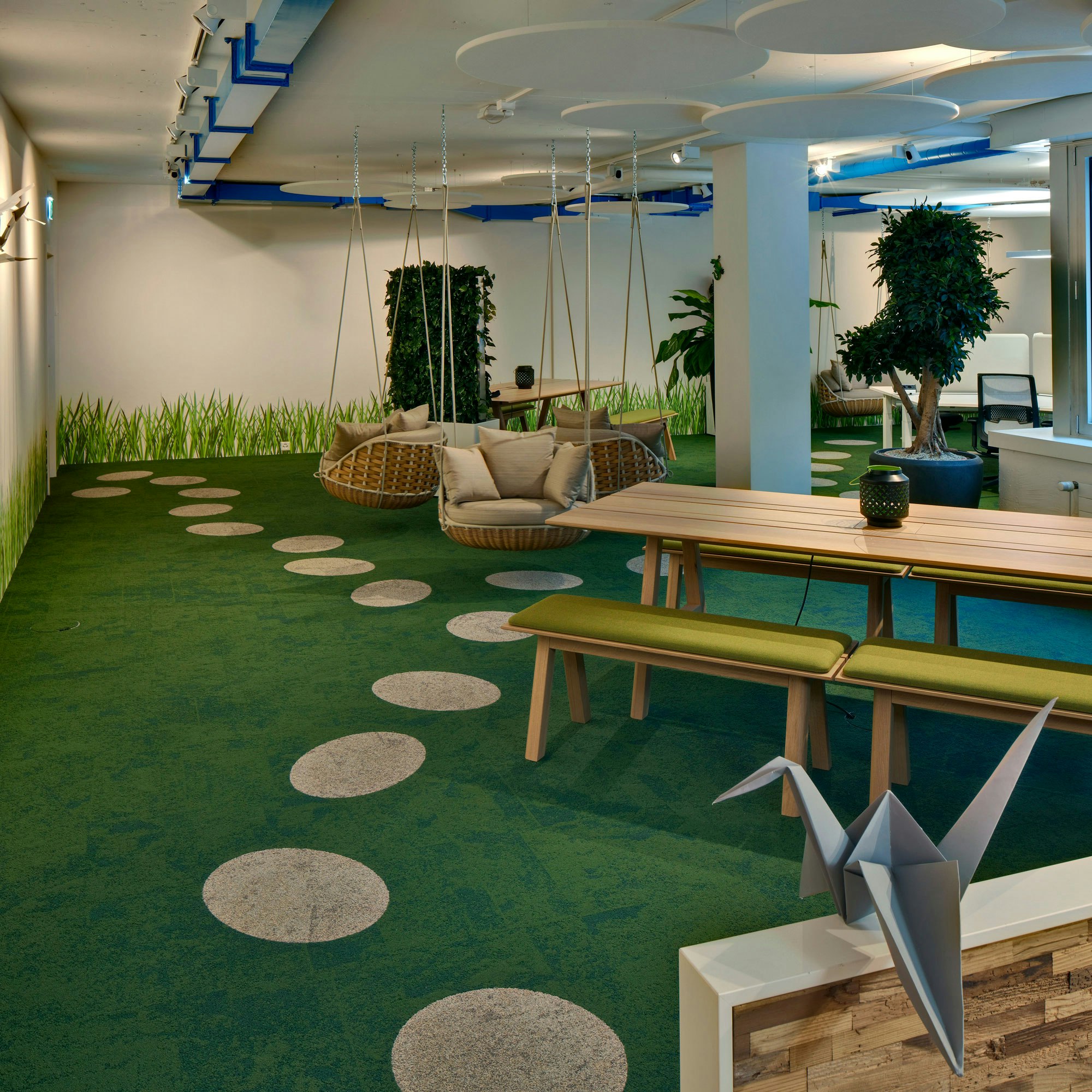 Plants and biophilic elements will help you revamp your office in several different ways. Not only do plants provide extra oxygen to help increase health and well-being, but they also add freshness and vibrancy to any space, on top of keeping you connected to nature.