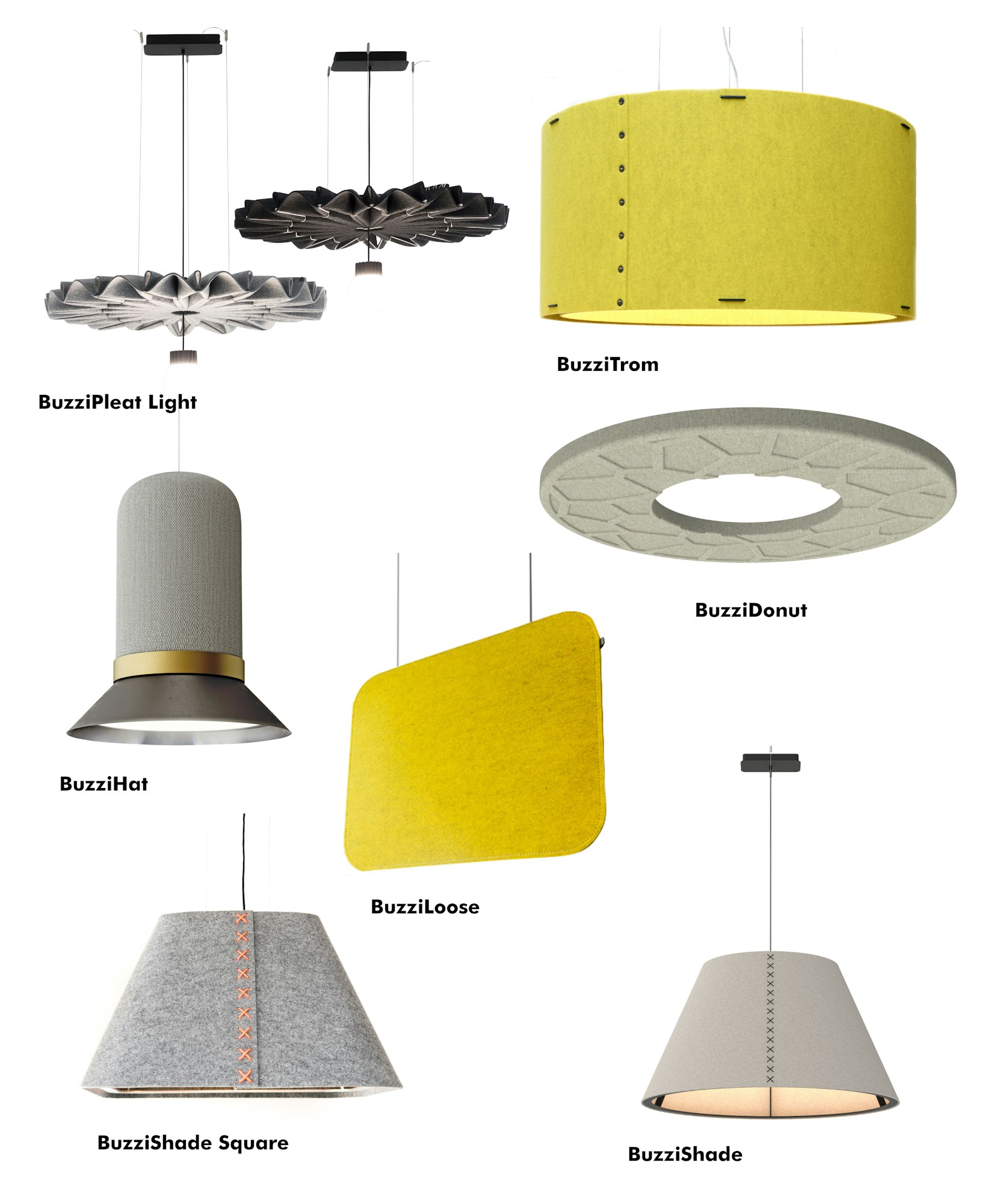 Showcased in the above image: BuzziPleat Light, BuzziTrom, BuzziHat, BuzziDonut, BuzziLoose, BuzziShade Square, BuzziShade.