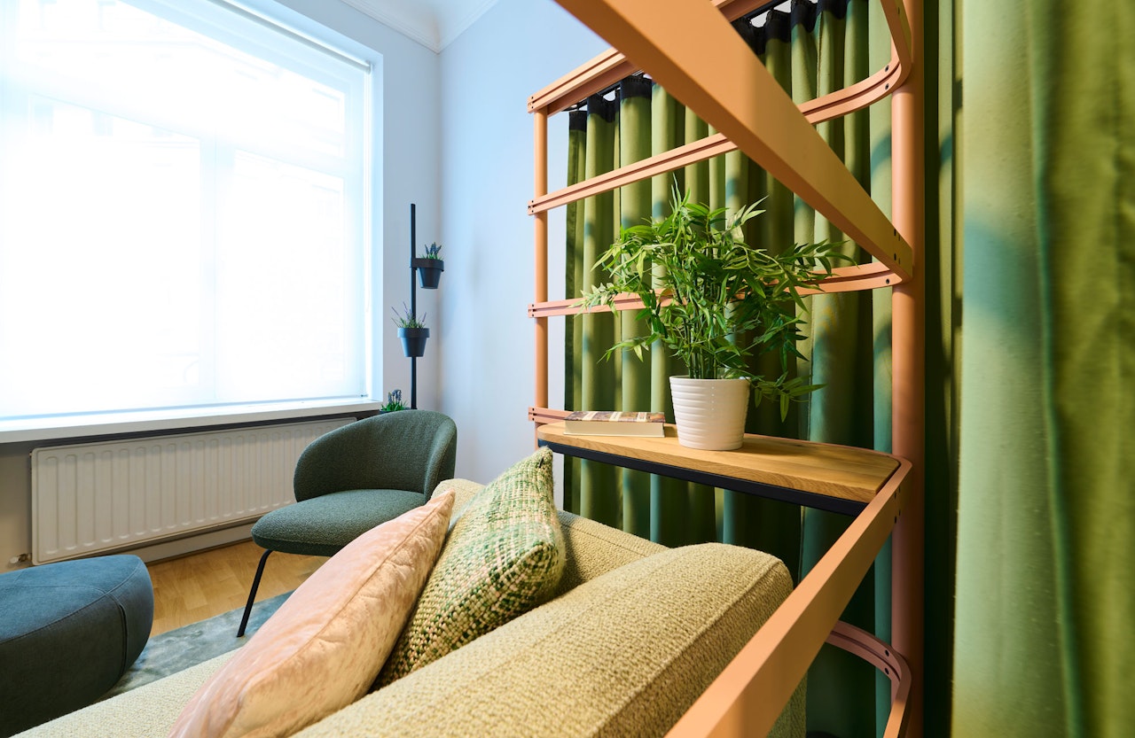 Each room features a distinct theme colour, reflecting the diverse topics discussed within the organization. This approach creates visual identity, improves spatial orientation, and subtly defines zones for focused work, meetings, and collaborative dialogue.
