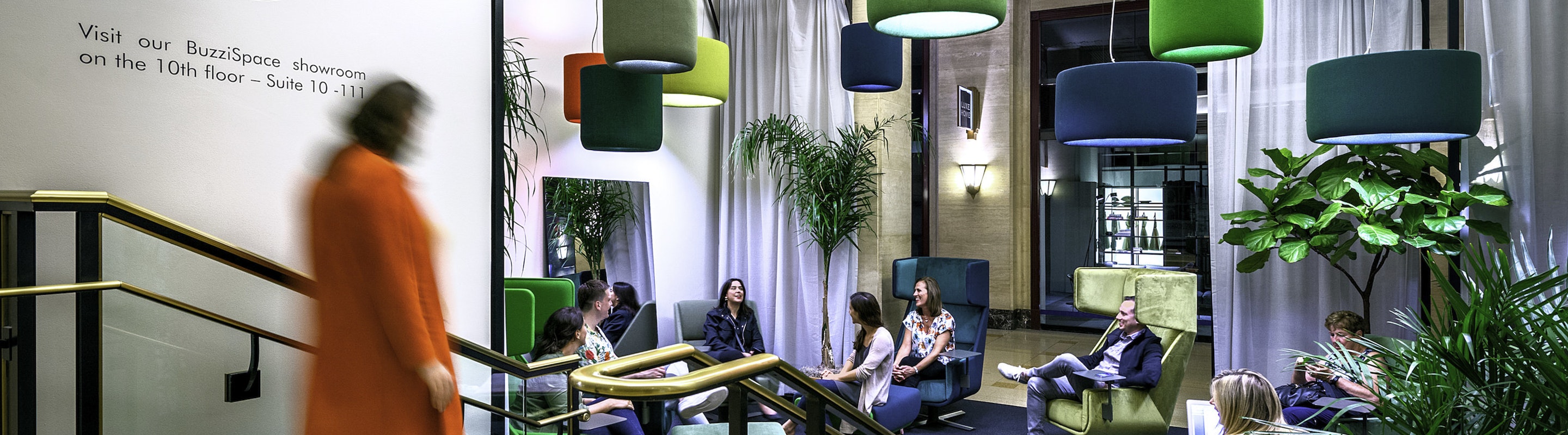 Can’t wait to join us in Chicago? Here is a sneak peek of our settings and acoustic solutions, furniture, and lighting elements that will be on display. You’ll also be able to discover some of our newer products including BuzziHug, BuzziNest, and BuzziShield Hook, along with some soon-to-be-announced launches. So stay tuned!