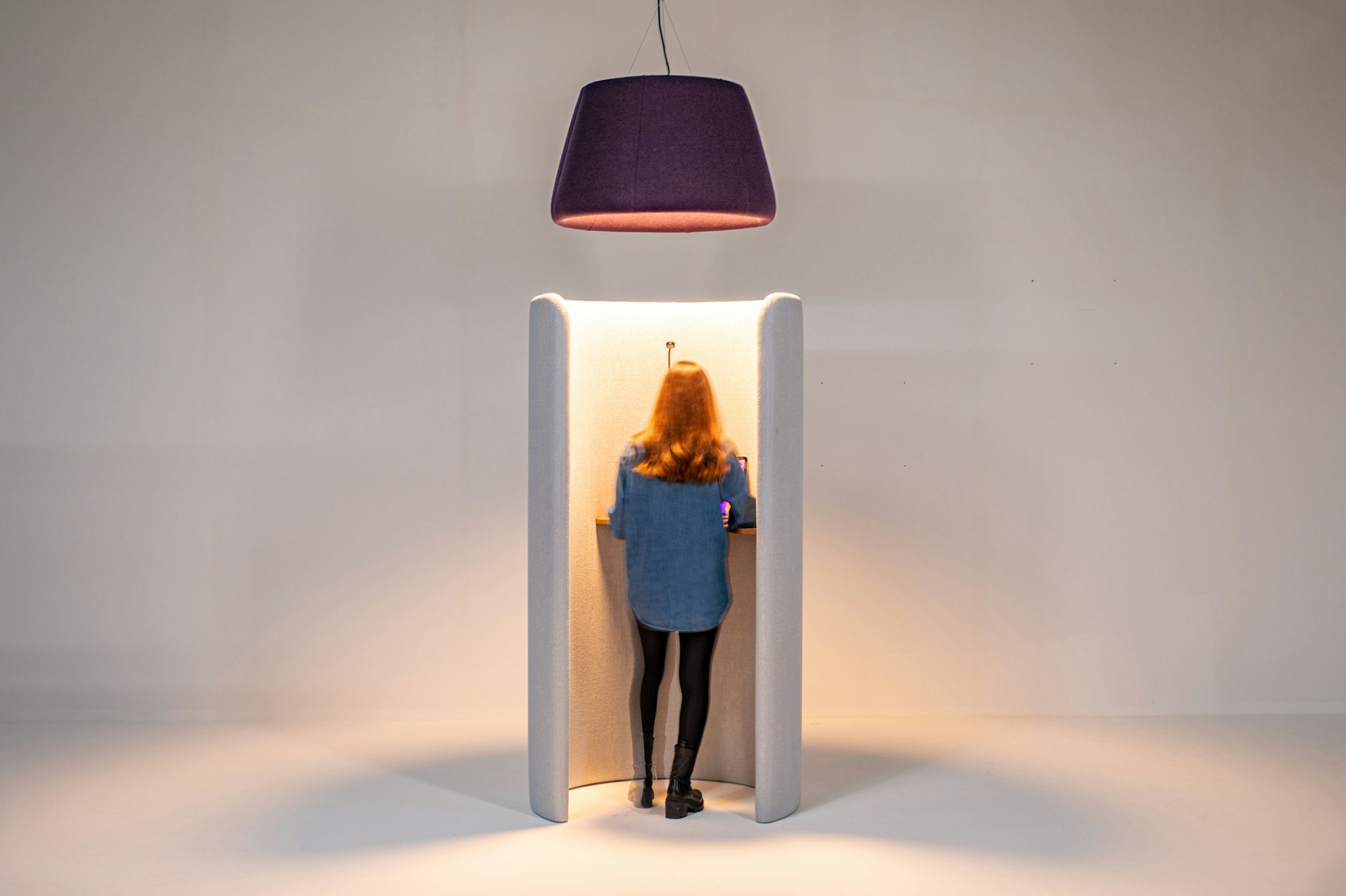 We understand that finding a quiet space in a busy or open-plan office can be challenging, especially if you need to take a private call, hold a virtual meeting, or need a spot to do some focus work. To combat this, easily create an island of calm in large open areas with our sound-absorbing privacy booths, designed for smaller meetings, a spot to brainstorm or take a call.