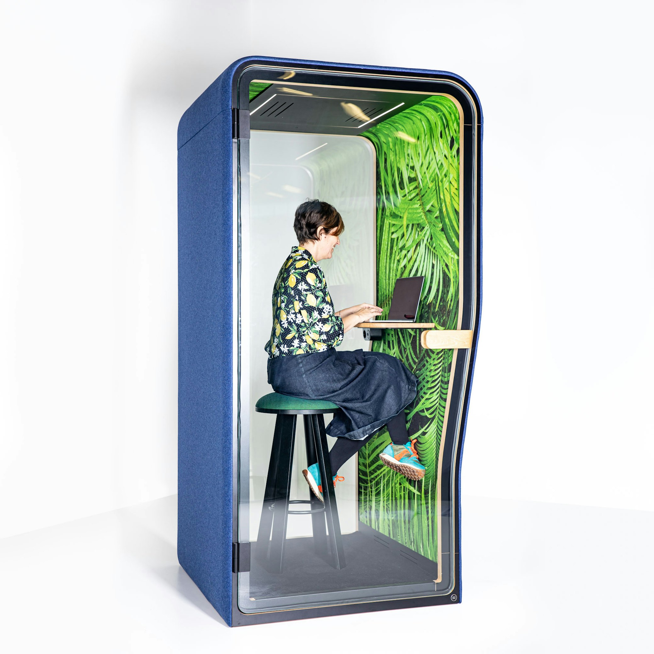 A selection of our privacy booths can be upholstered in biophilic prints.
